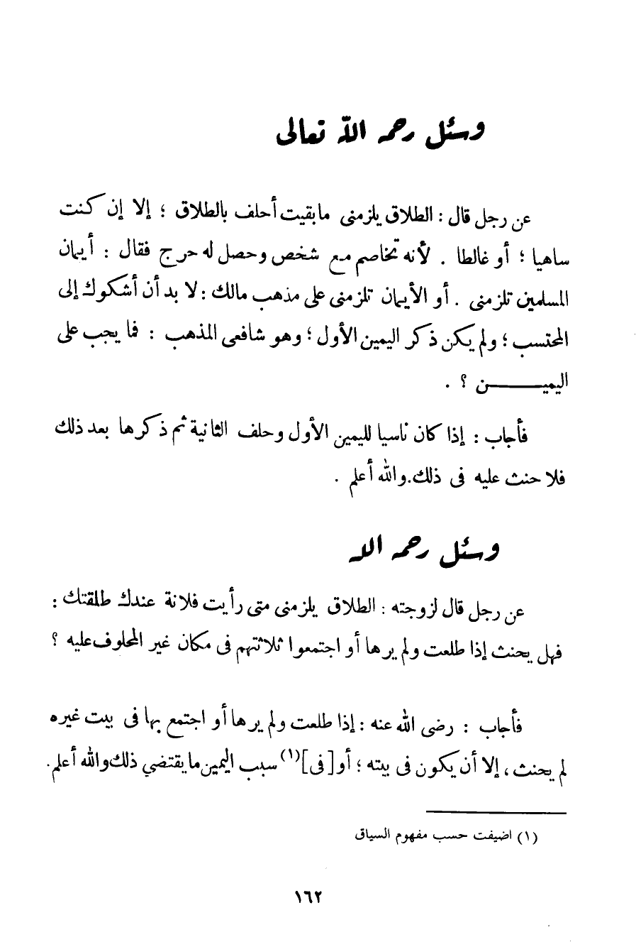 وَسُئِلَ - رَحِمَهُ اللَّهُ -:
