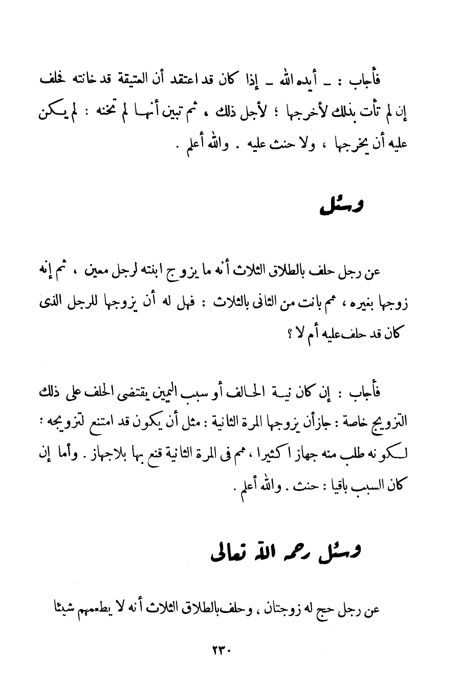 وَسُئِلَ - رَحِمَهُ اللَّهُ تَعَالَى -: