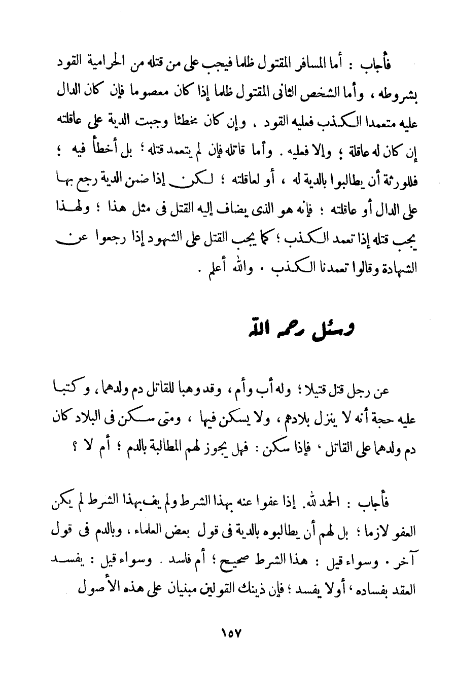 أَمَّا الْمُسَافِرُ الْمَقْتُولُ ظُلْمًا فَيَجِبُ عَلَى مَنْ قَتَلَهُ مِنْ الْحَرَامِيَّةِ الْقَوَدُ بِشُرُوطِهِ وَأَمَّا الشَّخْصُ الثَّانِي الْمَقْتُولُ ظُلْمًا إذَا كَانَ مَعْصُومًا فَإِنْ كَانَ الدَّالُّ عَلَيْهِ مُتَعَمِّدًا الْكَذِبَ فَعَلَيْهِ الْقَوَدُ وَإِنْ كَانَ مُخْطِئًا وَجَبَتْ الدِّيَةُ عَلَى عَاقِلَتِهِ إنْ كَانَ لَهُ عَاقِلَةٌ؛ وَإِلَّا فَعَلَيْهِ. وَأَمَّا قَاتِلُهُ فَإِنْ لَمْ يَتَعَمَّدْ قَتْلَهُ؛ بَلْ أَخْطَأَ فِيهِ؛ فَلِلْوَرَثَةِ أَنْ يُطَالِبُوا بِالدِّيَةِ لَهُ أَوْ لِعَاقِلَتِهِ؛ لَكِنْ إذَا ضَمِنَ الدِّيَةَ رَجَعَ بِهَا عَلَى الدَّالِّ أَوْ عَاقِلَتِهِ؛ فَإِنَّهُ هُوَ الَّذِي يُضَافُ إلَيْهِ الْقَتْلُ فِي مِثْلِ هَذَا؛ وَلِهَذَا يَجِبُ قَتْلُهُ إذَا تَعَمَّدَ الْكَذِبَ؛ كَمَا يَجِبُ الْقَتْلُ عَلَى الشُّهُودِ إذَا رَجَعُوا عَنْ الشَّهَادَةِ وَقَالُوا تَعَمَّدْنَا الْكَذِبَ. وَاَللَّهُ أَعْلَمُ.