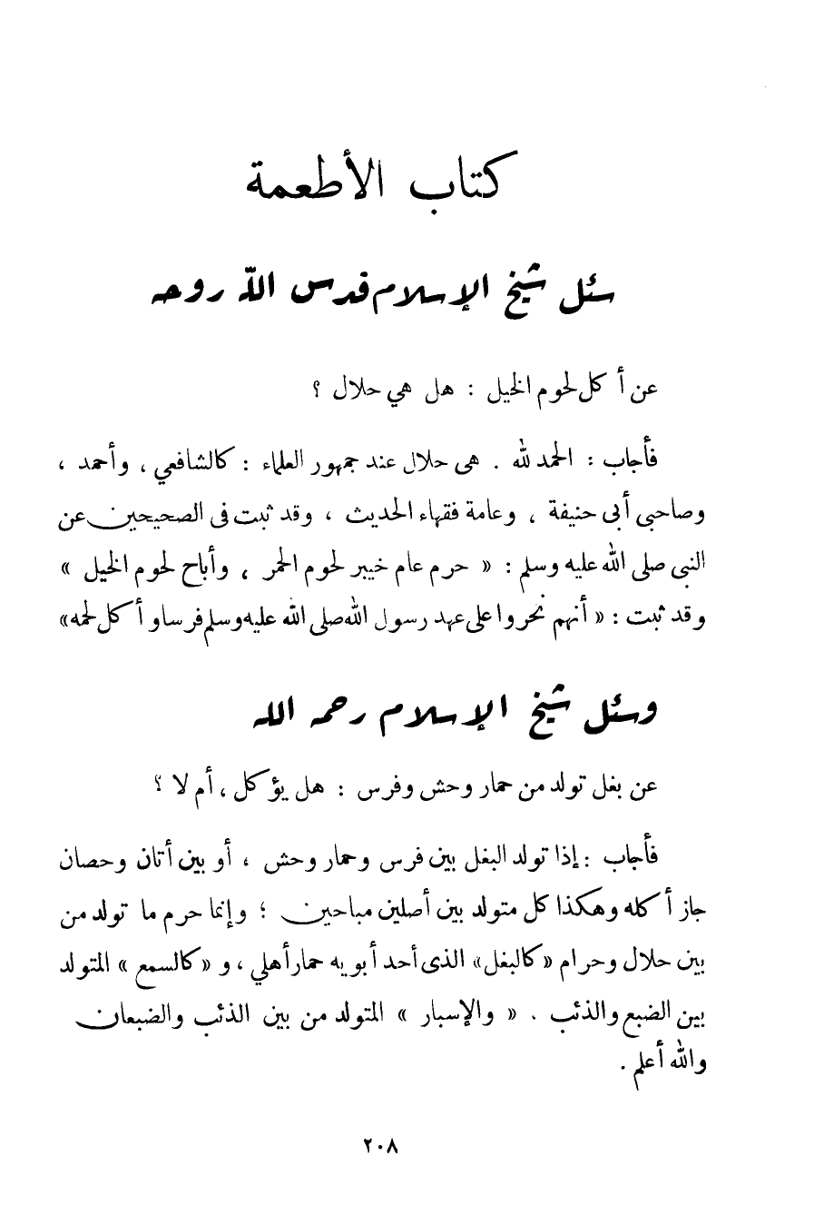 سُئِلَ شَيْخُ الْإِسْلَامِ - قَدَّسَ اللَّهُ رُوحَهُ -: