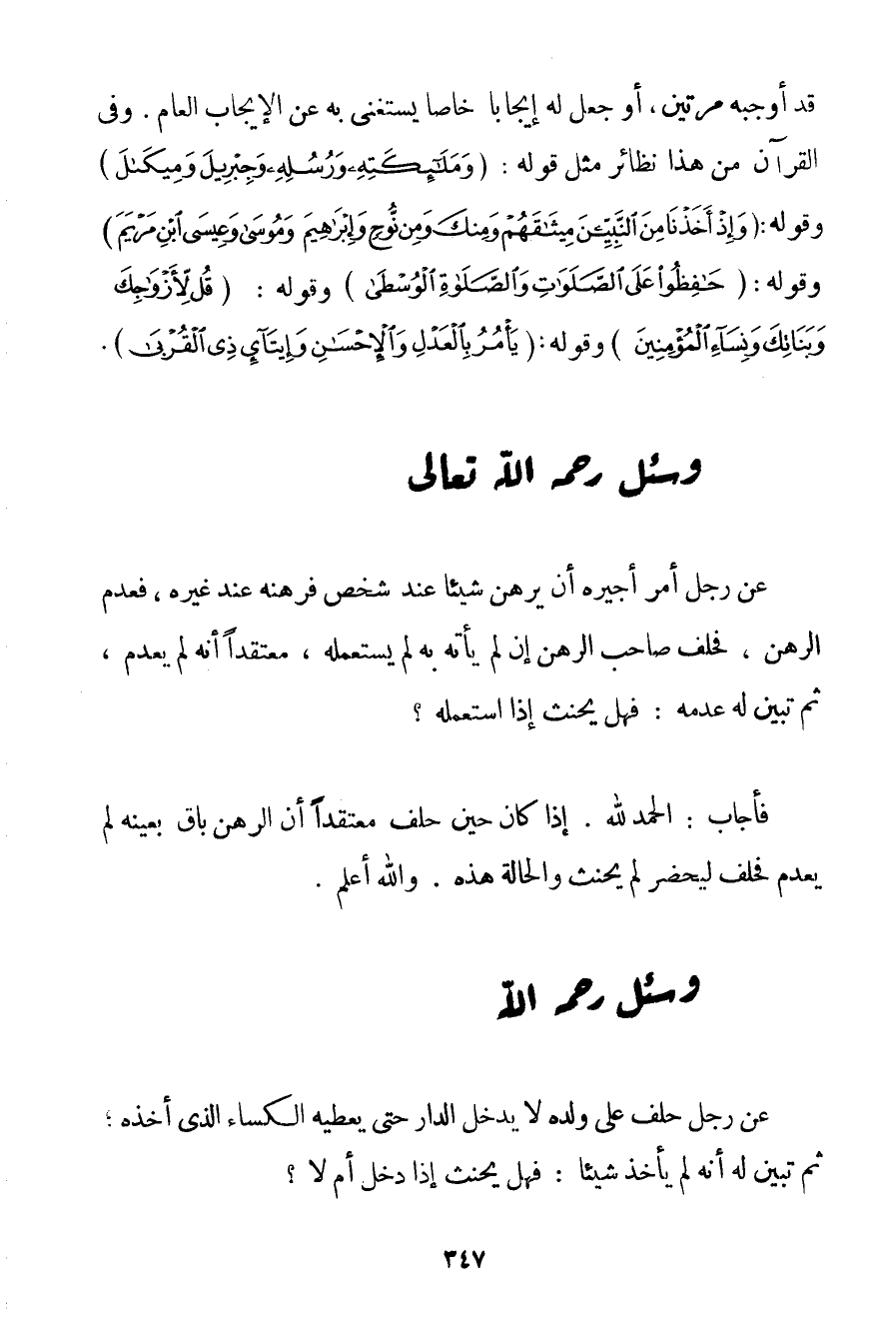 وَسُئِلَ - رَحِمَهُ اللَّهُ -: