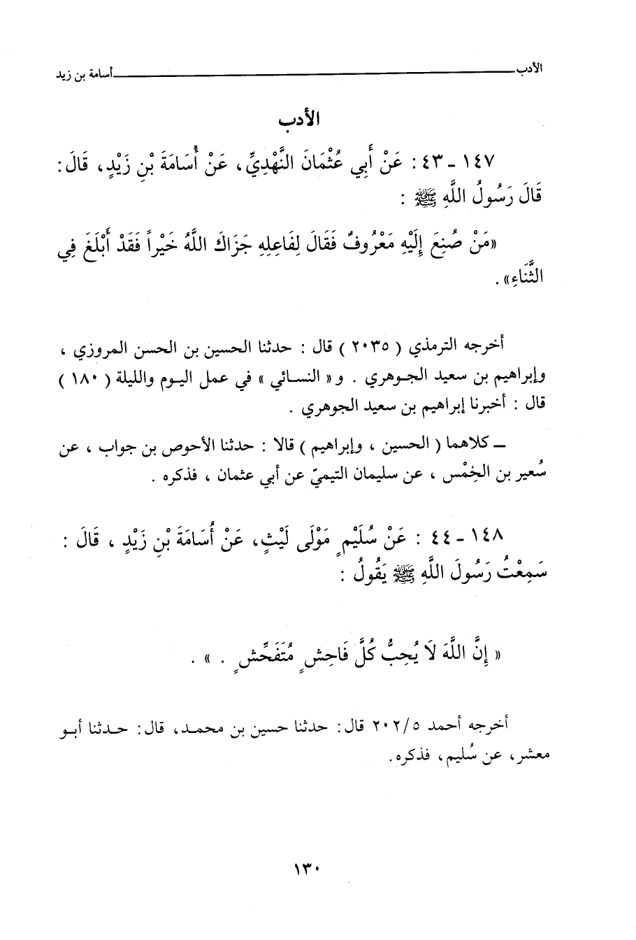 ١٤٧ - عَنْ أَبِي عُثْمَانَ النَّهْدِيِّ، عَنْ أُسَامَةَ بْنِ زَيْدٍ، قَالَ: قَالَ رَسُولُ اللهِ صلى الله عليه وسلم: