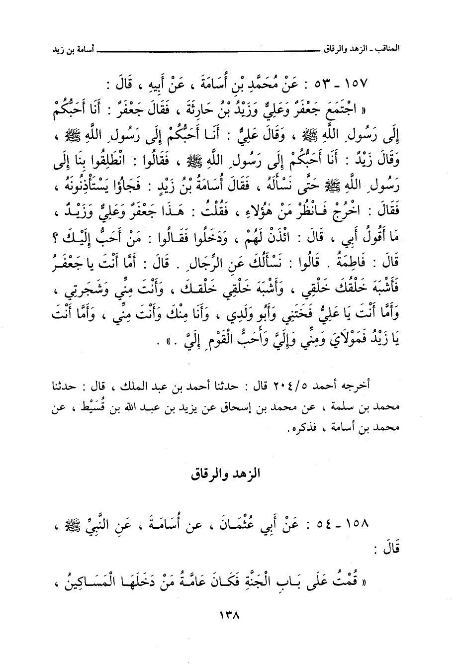 ١٥٧ - عَنْ مُحَمَّدِ بْنِ أُسَامَةَ، عَنْ أَبِيهِ، قَالَ: