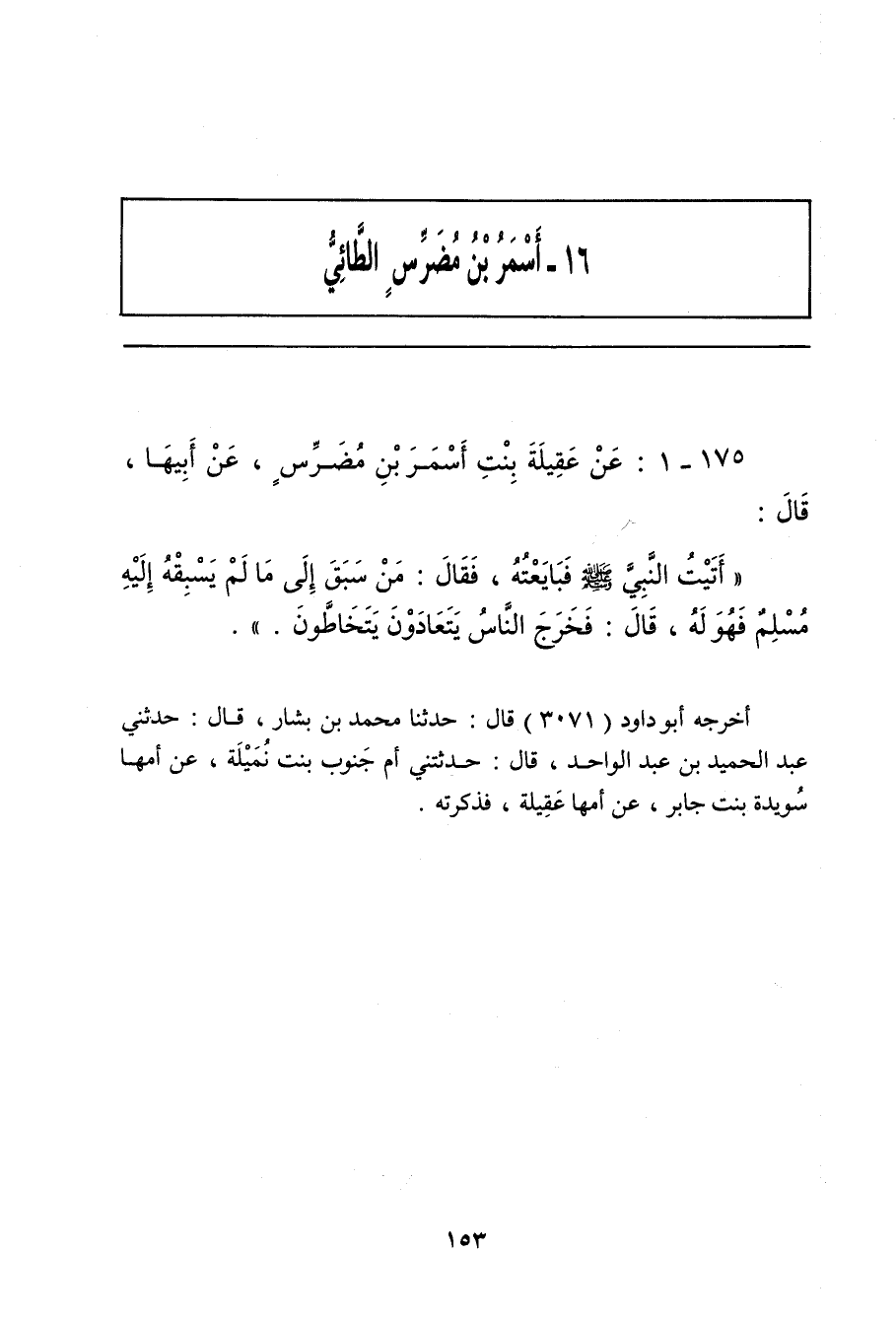 ١٧٥ - عَنْ عَقِيلَةَ بِنْتِ أَسْمَرَ بْنِ مُضَرِّسٍ، عَنْ أَبِيهَا أَسْمَرَ بْنِ مُضَرِّسٍ، قَالَ: