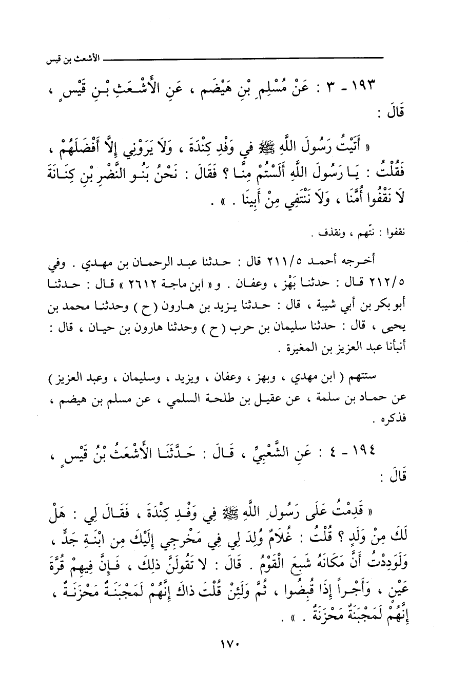 ١٩٣ - عَنْ مُسْلِمِ بْنِ هَيْصَمٍ، عَنِ الأَشْعَثِ بْنِ قَيْسٍ، قَالَ: