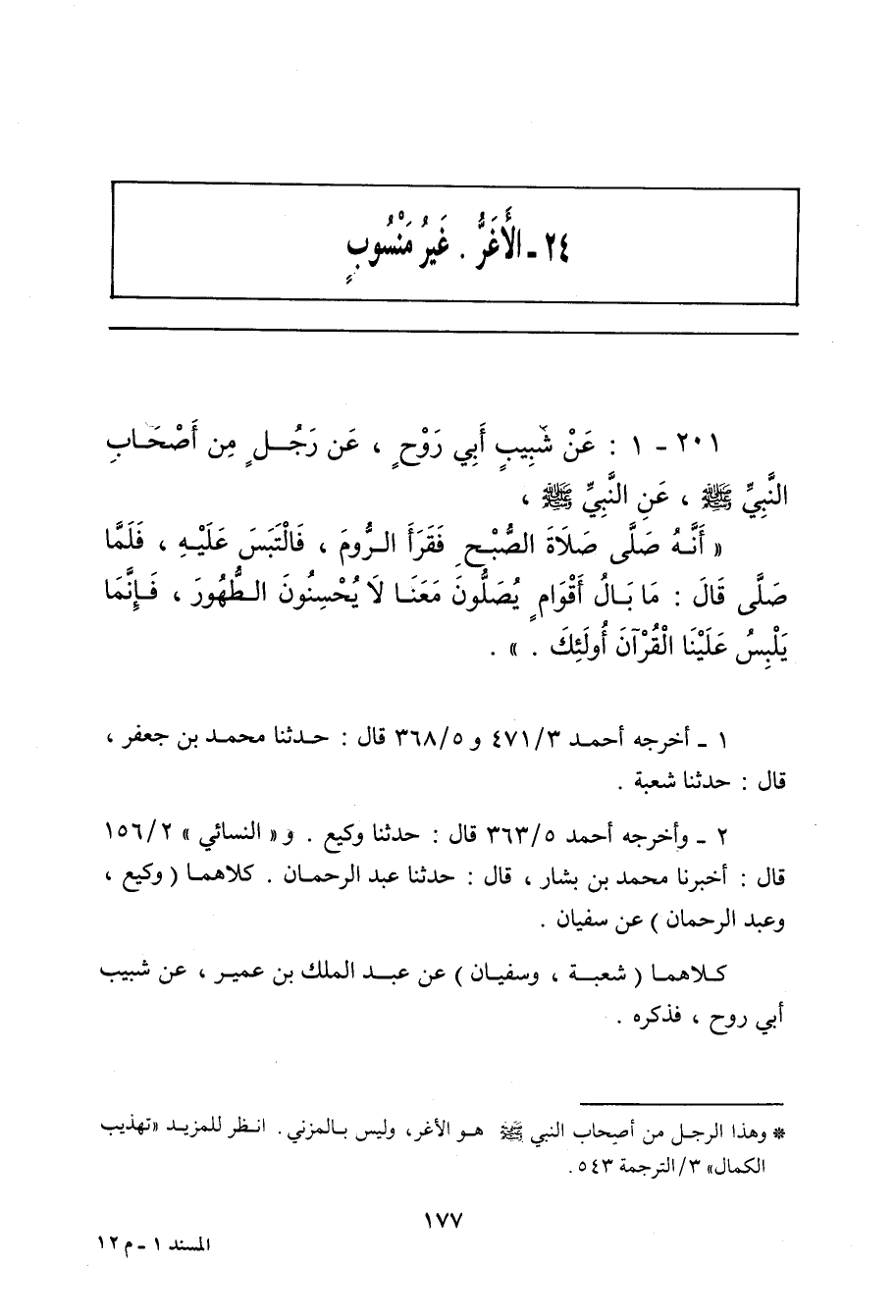 أخرجه أحمد ٣/ ٤٧١ و ٥/ ٣٦٨ قال: حدثنا محمد بن جعفر. قال: حدثنا شُعبة. وفي ٥/ ٣٦٣ قال: حدثنا وكيع. قال: حدثنا سُفيان. و"النَّسَائي" ٢/ ١٥٦ قال: أخبرنا محمد بن بشار. قال: حدثنا عبد الرحمن. كلاهما (وكيع , وعبد الرحمن) عن سُفيان.