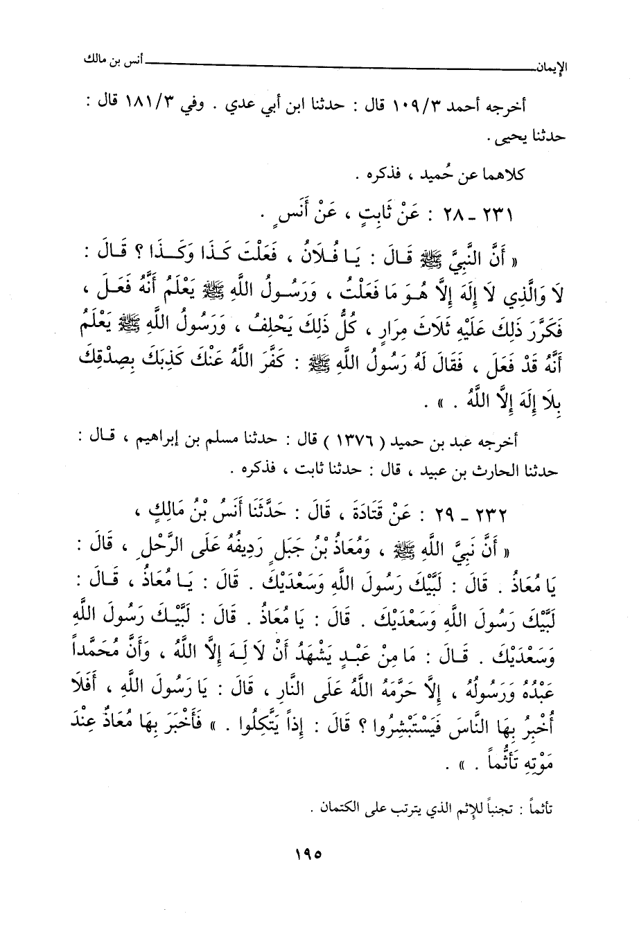 ٢٣١ - عَنْ ثَابِتٍ الْبُنَانِيِّ، عَنْ أَنَسٍ، أَنَّ النَّبِيَّ صلى الله عليه وسلم قَالَ: