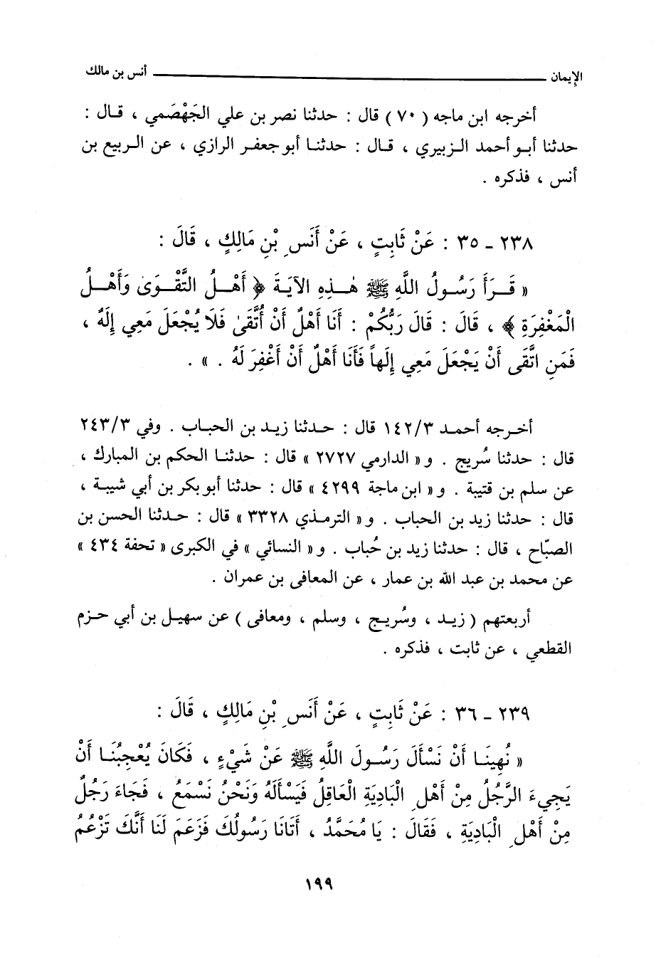 ٢٣٨ - عَنْ ثَابِتٍ، عَنْ أَنَسِ بْنِ مَالِكٍ، قَالَ: