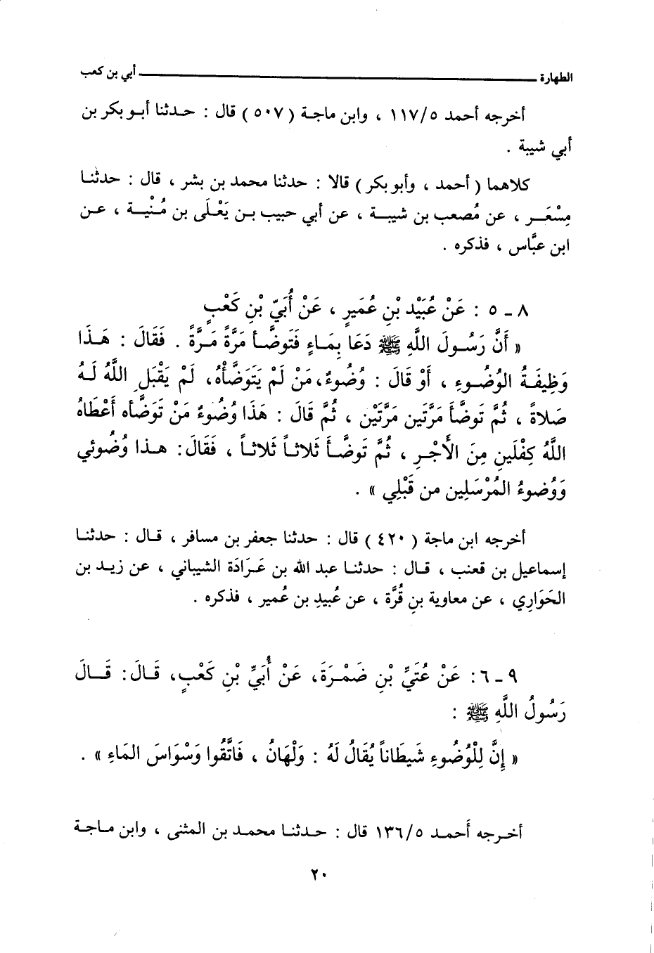 أَنَّ رَسُولَ اللهِ صلى الله عليه وسلم دَعَا بِمَاءٍ، فَتَوَضَّأَ مَرَّةً مَرَّةً، فَقَالَ: هَذَا وَظِيفَةُ الْوُضُوءِ، أَوْ قَالَ: وُضُوءٌ مَنْ لَمْ يَتَوَضَّأْهُ لَمْ يَقْبَلِ اللَّهُ لَهُ صَلَاةً، ثُمَّ تَوَضَّأَ مَرَّتَيْنِ مَرَّتَيْنِ، ثُمَّ قَالَ: هَذَا وُضُوءٌ مَنْ تَوَضَّأَهُ أَعْطَاهُ اللَّهُ كِفْلَيْنِ مِنَ الأَجْرِ، ثُمَّ تَوَضَّأَ ثَلَاثًا ثَلَاثًا، فقَالَ: هَذَا وُضُوئِي، وَوُضُوءُ الْمُرْسَلِينَ مِنْ قَبْلِي.