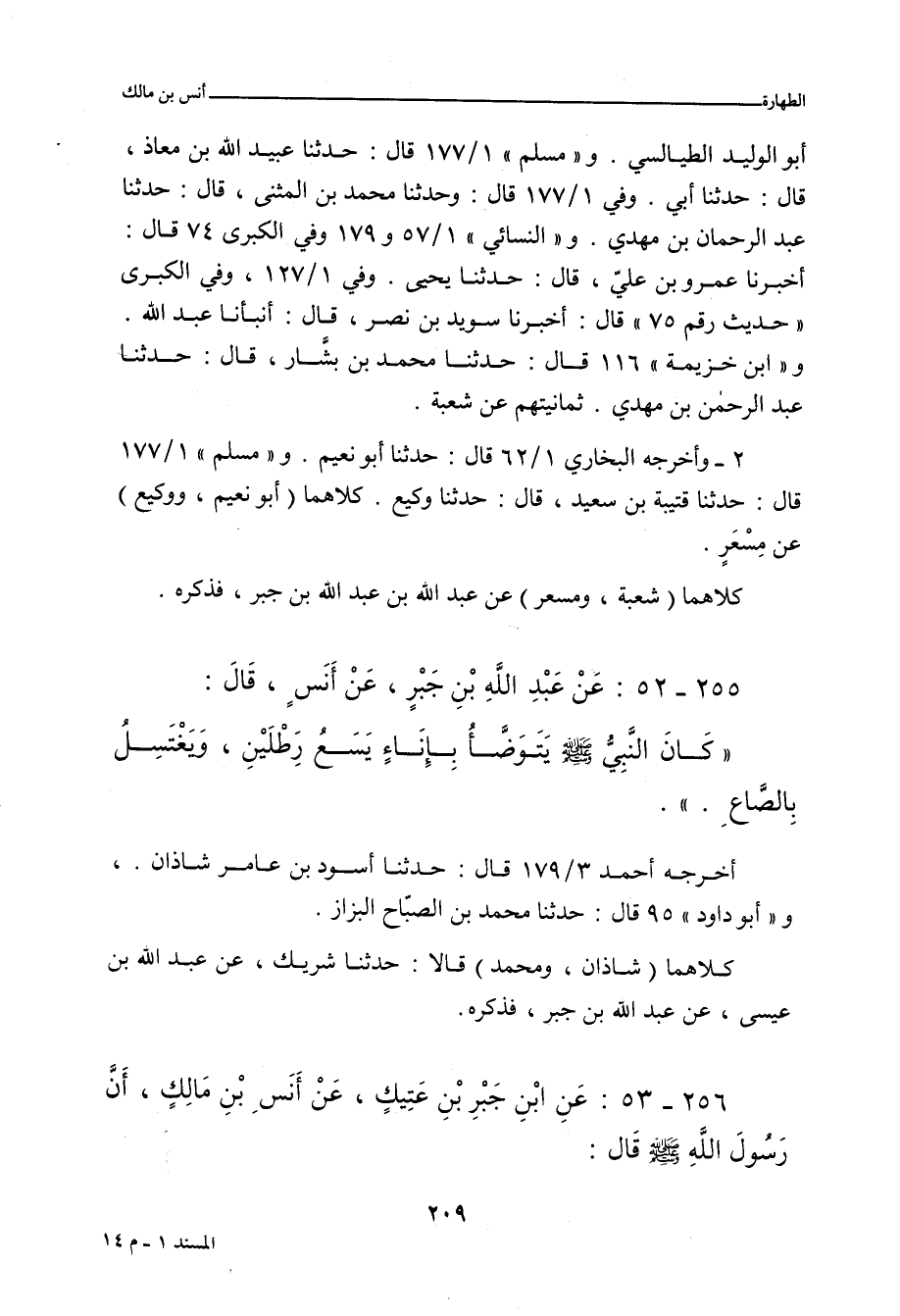 ورُوِي عن سُفْيان الثَّوْرِي، عن عَبْد الله بن عِيسَى، عن عَبْد الله بن جَبْر، عن أَنَسٍ؛ (أَنَّ النَّبِيَّ صلى الله عليه وسلم كَانَ يَتَوَضَّأُ بِالْمُدِّ، وَيَغْتَسِلُ بِالصَّاعِ.، وهذا أصحُّ من حديثِ شَرِيك.