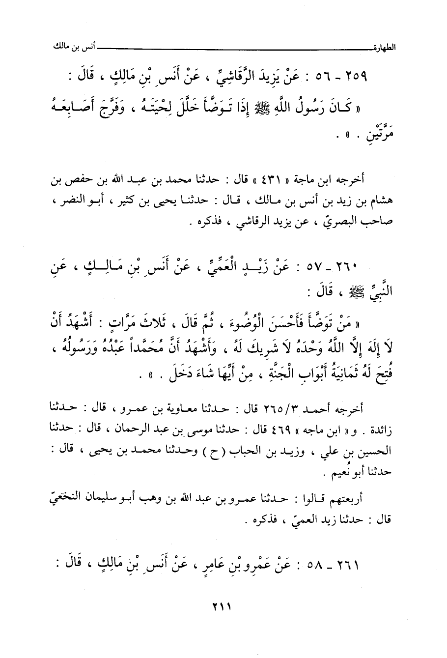 ٢٥٩ - عَنْ يَزِيدَ الرَّقَاشِيِّ، عَنْ أَنَسِ بْنِ مَالِكٍ، قَالَ: