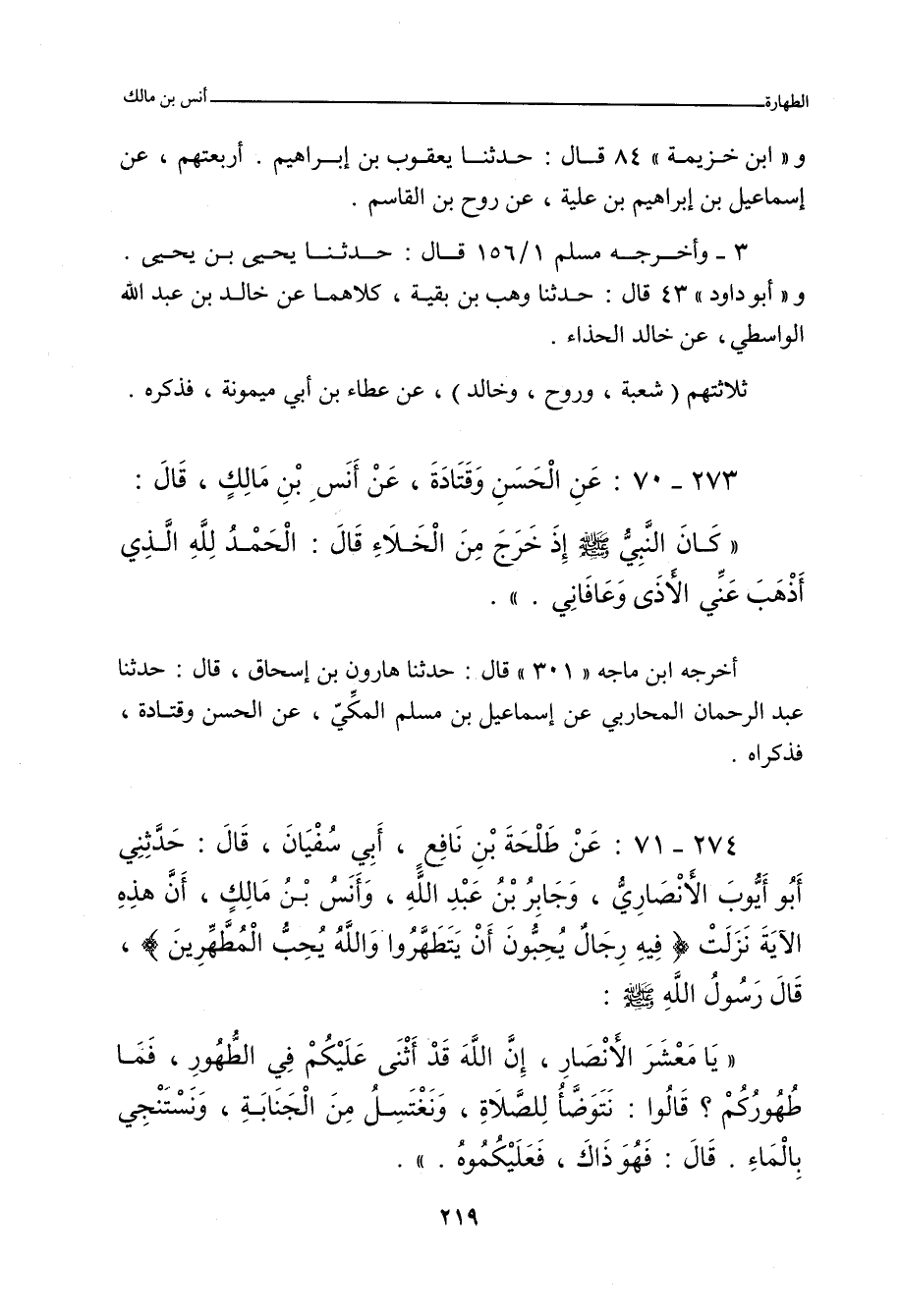أخرجه ابن ماجة (٣٠١) قال: حدَّثنا هارون بن إِسْحَاق، حدَّثنا عَبْد الرَّحْمان المُحَارِبِي، عن إِسْمَاعِيل بن مُسْلم، عن الحَسَن، وقَتَادَة، فذكراه.