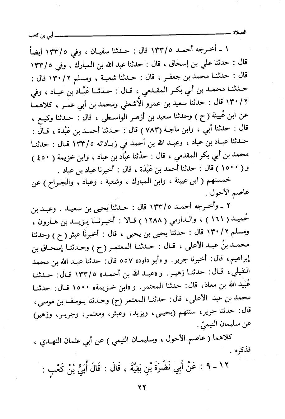 أخرجه أحمد ٥/ ١٣٣ (٢١٥٣١) قال: حدَّثنا سُفْيان، عن عاصم. وفي (٢١٥٣٢) قال: حدَّثنا علي بن إِسْحَاق، حدَّثنا عَبْد الله بن المُبَارك، أنبانا عاصم الأَحْوَل. وفي (٢١٥٣٣) قال: حدَّثنا يَحيى ابن سَعِيد، عن التَّيْمِي. وفي (٢١٥٣٤) قال: حدَّثنا مُحَمد بن جَعْفَر، حدَّثنا شُعْبة، عن عاصم. و"عَبد بن حُميد" ١٦١ قال: أخبرنا يَزِيد بن هارون، أخبرنا سُلَيْمان التَّيْمِي. و"الدارِمِي" ١٢٨٤ قال: أخبرنا يَزِيد بن هارون، حدَّثنا التَّيْمِي. و"مسلم" ٢/ ١٣٠ (١٤٥٩) قال: حدَّثنا يَحيى بن يَحيى، أخبرنا عَبْثَر، عن سُلَيْمان التَّيْمِي. وفي (١٤٦٠) قال: وحدَّثنا مُحَمد بن عَبْد الأَعْلَى، حدَّثنا المُعْتَمِر (ح) وحدَّثنا إِسْحَاق بن إبراهيم، قال: أخبرنا جَرِير، كلاهما عن التَّيْمِي. وفي (١٤٦١) قال: حدَّثنا مُحَمد بن أَبي بَكْر المُقَدَّمِي، حدَّثنا عَبَّاد بن عَبَّاد، حدَّثنا عاصم. وفي (١٤٦٢) قال: وحدَّثنا سَعِيد بن عَمْرو الأَشْعَثِي، ومُحَمد بن أَبي عُمَر، كلاهما عن ابن عُيَيْنَة (ح) وحدَّثنا سَعِيد بن أَزْهَر الواسطي، قال: حدَّثنا وَكِيع، حدَّثنا أَبي، كلهم عن عاصم. و"أبو داود" ٥٥٧ قال: حدَّثنا عَبْد الله بن مُحَمد النُّفَيْلِي، حدَّثنا زُهَيْر، حدَّثنا سُلَيْمان التَّيْمِي. و"ابن ماجة" ٧٨٣ قال: حدَّثنا أحمد بن عَبْدَة، حدَّثنا عَبَّاد بن عَبَّاد المُهَلَّبِي، حدَّثنا عاصم الأَحْوَل. و"عَبْد الله بن أحمد" ٥/ ١٣٣ (٢١٥٣٥) قال: حدَّثني عُبَيْد الله ابن مُعَاذ بن مُعَاذ العَنْبَرِي، حدَّثنا المُعْتَمِر، قال: قال أَبي رَحِمَهُ الله. وفي (٢١٥٣٦) قال: حدَّثنا مُحَمد بن أَبي بَكْر المُقَدَّمِي , حدَّثنا عَبَّاد بن عَبَّاد , حدَّثنا عاصم. و"ابن خزيمة" ٤٥٠ و ١٥٠٠ قال: حدَّثنا أحمد بن عَبْدَة الضَّبِّي، أخبرنا عَبَّاد، يَعْنِي ابن عَبَّاد المُهَلَّبِي،