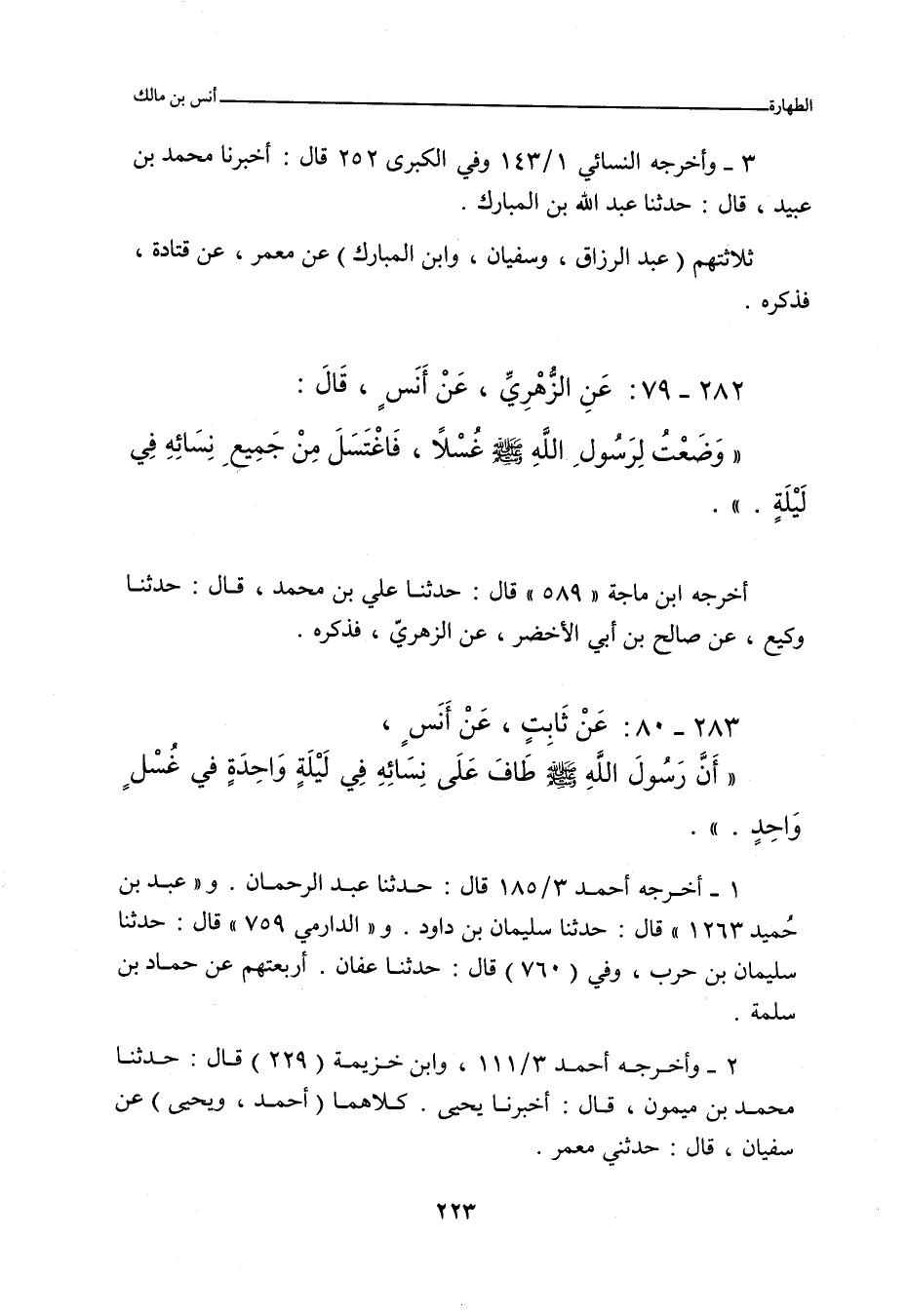 - وفي رواية: أَنَّ رَسُولَ اللهِ صلى الله عليه وسلم طَافَ عَلَى نِسَائِهِ جَمْعٍ، فِي لَيْلَةٍ وَاحِدَةٍ، فِي غُسْلٍ وَاحِدٍ.