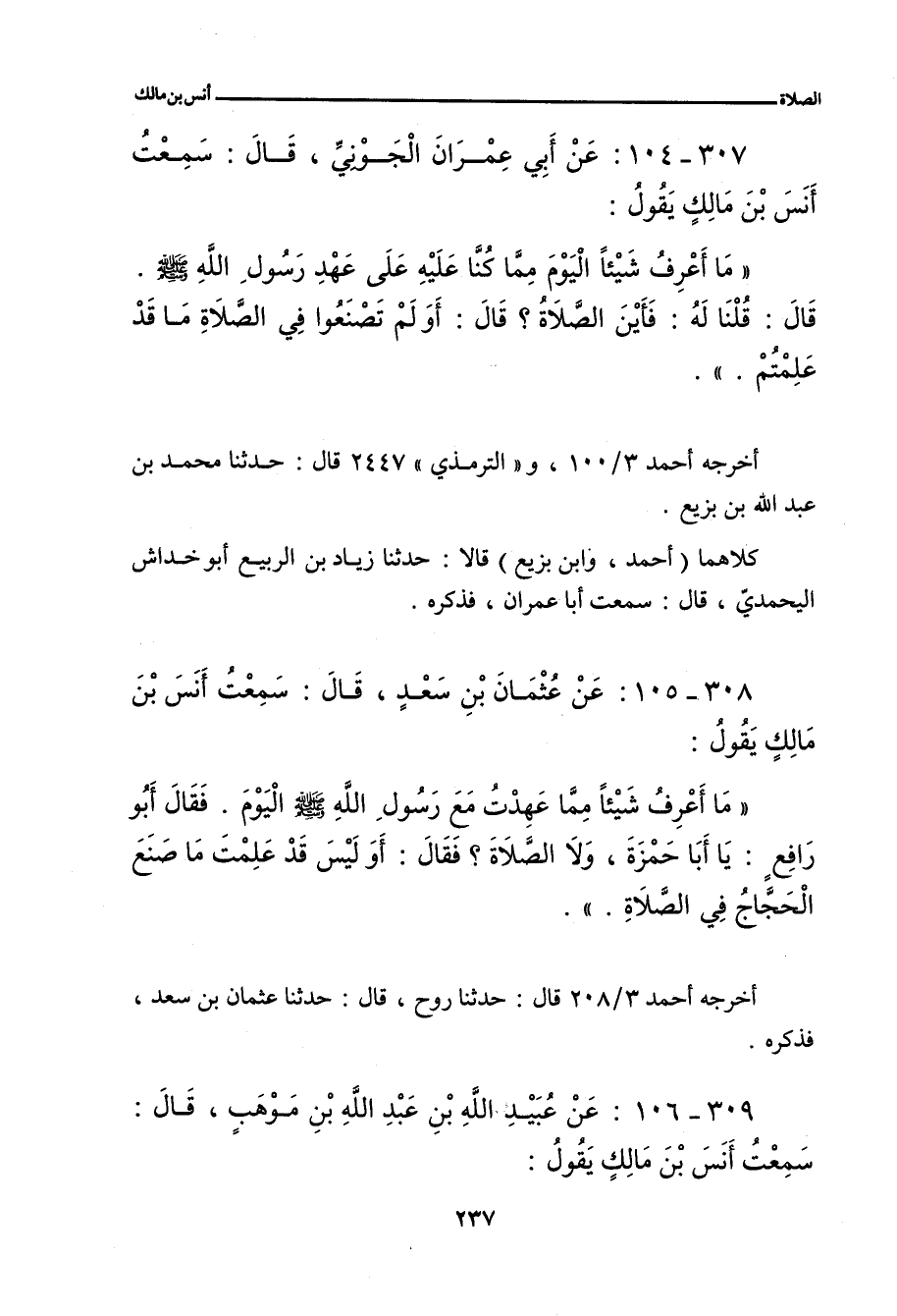 ٣٠٨ - عَنْ عُثْمَانَ بْنِ سَعْدٍ، قَالَ: سَمِعْتُ أَنَسَ بْنَ مَالِكٍ يَقُولُ: