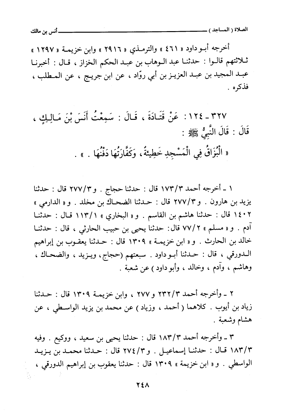 ٣٢٧ - عَنْ قَتَادَةَ، قَالَ: سَمِعْتُ أَنَسَ بْنَ مَالِكٍ، قَالَ: قَالَ النَّبِيُّ صلى الله عليه وسلم: