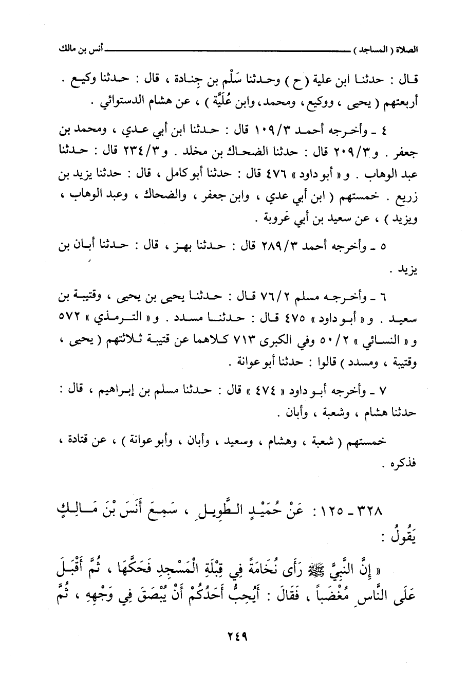 وفي ٢/ ٧٧ (١١٦٩) قال: حدَّثنا يَحيى بن حَبِيب الحارثي، حدَّثنا خالد، يَعْنِي ابن الحارث، حدَّثنا شُعْبة. و"أبو داود" ٤٧٤ قال: حدَّثنا مُسْلم بن إبراهيم، حدَّثنا هِشَام، وشُعْبة، وأبان. وفي (٤٧٥) قال: حدَّثنا مُسَدَّد، حدَّثنا أبو عَوَانَة. وفي (٤٧٦) قال: حدَّثنا أبو