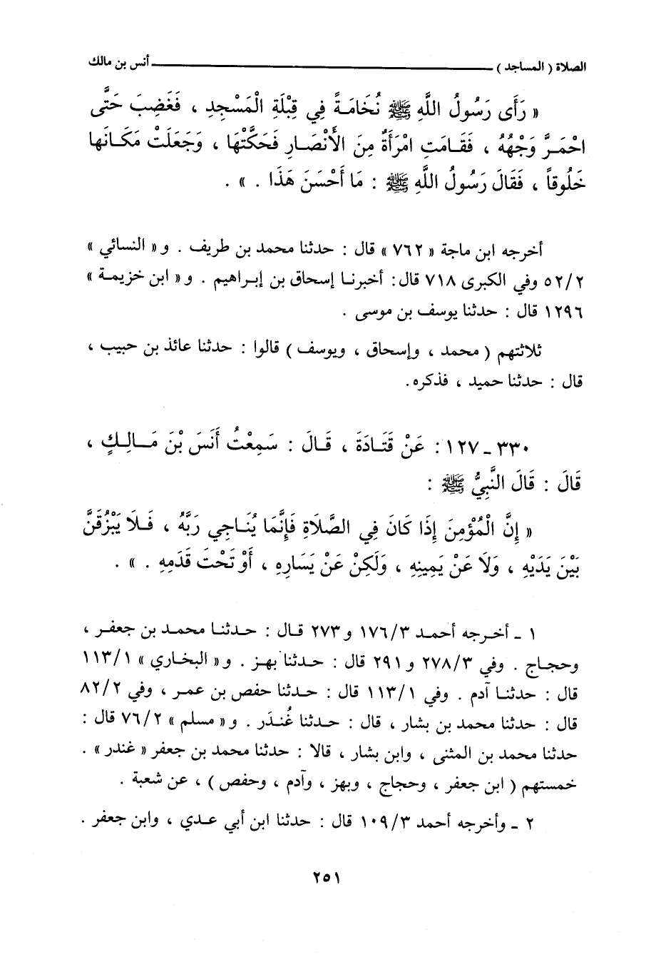 ٣٣٠ - عَنْ قَتَادَةَ، قَالَ: سَمِعْتُ أَنَسَ بْنَ مَالِكٍ، قَالَ: قَالَ النَّبِيُّ صلى الله عليه وسلم: