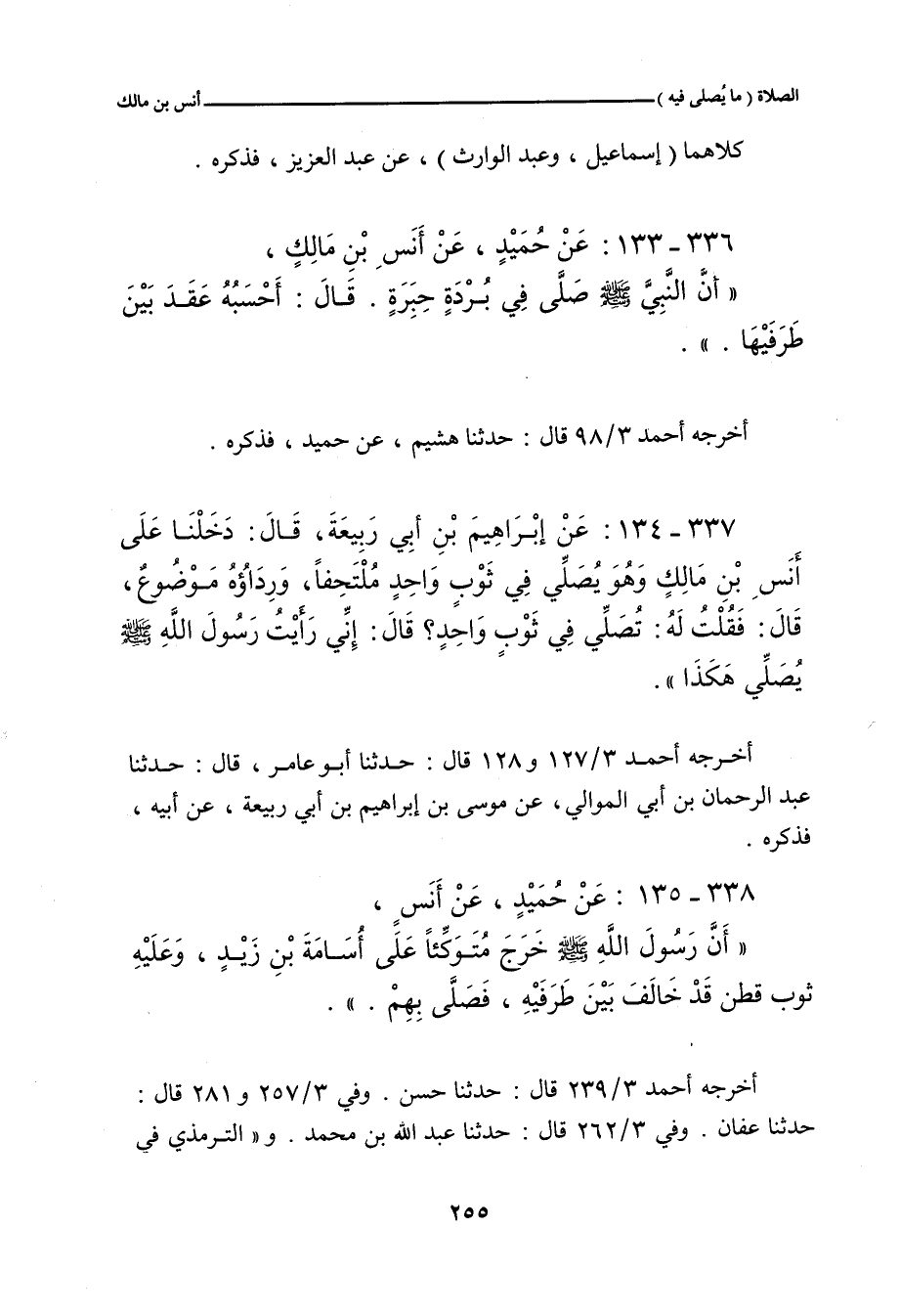 ٣٣٧ - عَنْ إِبْرَاهِيمَ بْنِ أَبِي رَبِيعَةَ، قَالَ: دَخَلْنَا عَلَى أَنَسِ بْنِ مَالِكٍ، وَهُوَ يُصَلِّي فِي ثَوْبٍ وَاحِدٍ، مُلْتَحِفًا، وَرِدَاؤُهُ مَوْضُوعٌ، قَالَ: فَقُلْتُ لَهُ: تُصَلِّي فِي ثَوْبٍ وَاحِدٍ؟ قَالَ: