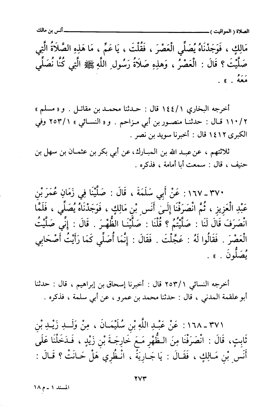 ٣٧٠ - عَنْ أَبِي سَلَمَةَ، قَالَ: صَلَّيْنَا فِي زَمَانِ عُمَرَ بْنِ عَبْدِ الْعَزِيزِ، ثُمَّ انْصَرَفْنَا إِلَى أَنَسِ بْنِ مَالِكٍ، فَوَجَدْنَاهُ يُصَلِّي، فَلَمَّا انْصَرَفَ قَالَ لَنَا: صَلَّيْتُمْ؟ قُلْنَا: صَلَّيْنَا الظُّهْرَ، قَالَ: إِنِّي صَلَّيْتُ الْعَصْرَ، فَقَالُوا لَهُ: عَجَّلْتَ، فَقَالَ: إِنَّمَا أُصَلِّي كَمَا رَأَيْتُ أَصْحَابِي يُصَلُّونَ.