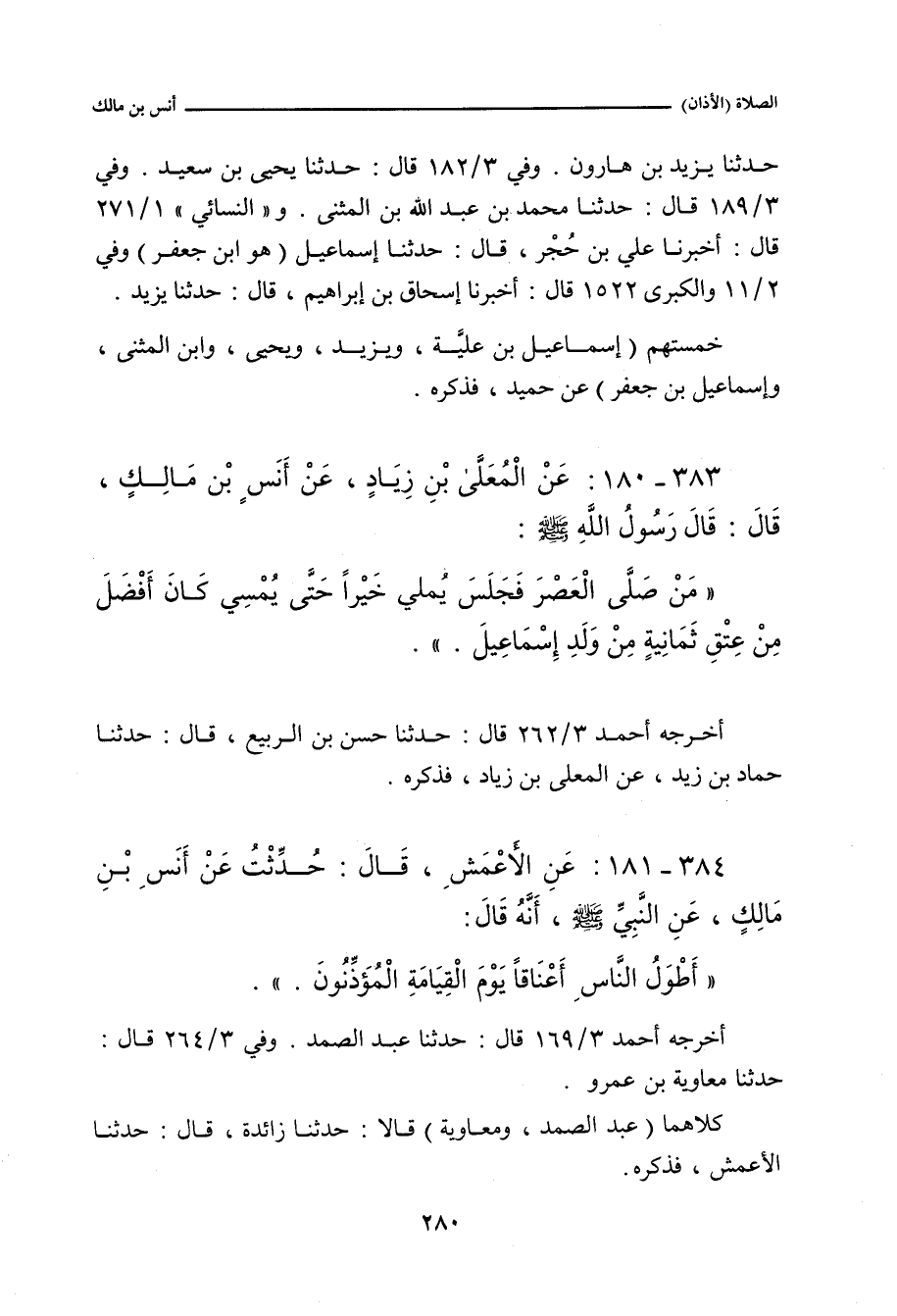 حدَّثنا يَزِيد بن هارون. وفي ٣/ ١٨٢ (١٢٩٠٦) قال: حدَّثنا يَحيى. وفي ٣/ ١٨٩ (١٢٩٩٤) قال: حدَّثنا مُحَمد بن عَبْد الله. و"النَّسائي" ١/ ٢٧١، وفي "الكبرى" ١٥٣٨ قال: أخبرنا علي بن حُجْر، قال: حدَّثنا إِسْمَاعِيل. وفي ٢/ ١١، وفي "الكبرى" ١٦١٨ قال: أخبرنا إِسْحَاق بن إبراهيم، قال: حدَّثنا يَزِيد.