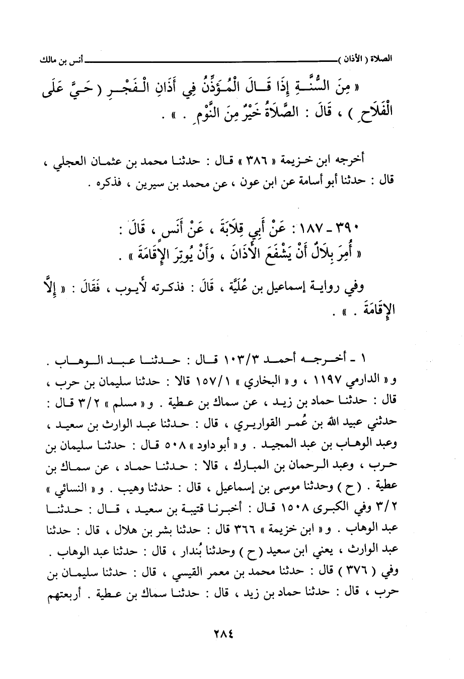 ٣٩٠ - عَنْ أَبِى قِلَابَةَ، عَنْ أَنَسِ بْنِ مَالِكٍ، قَالَ: