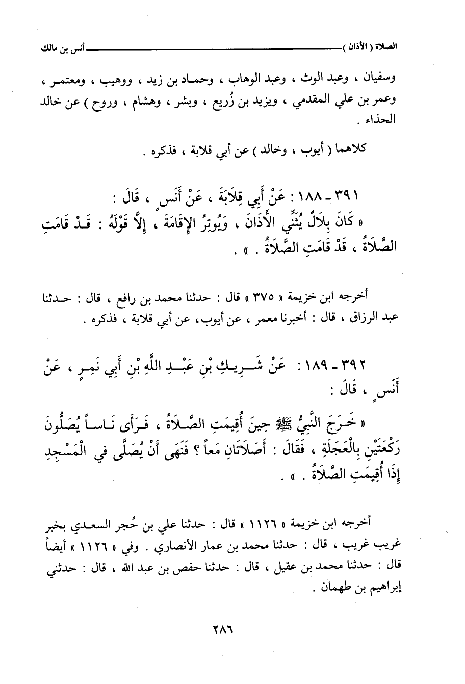 ٣٩١ - عن أَبي قِلَابَة، عَنْ أَنَسٍ، قَالَ: