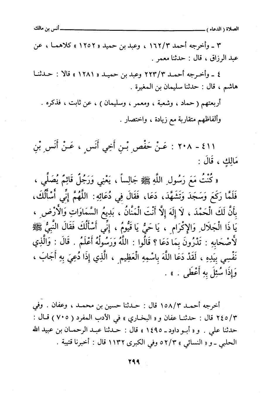 ٤١١ - عَنْ حَفْصِ بْنِ عُمَرَ، عَنْ أَنَسِ بْنِ مَالِكٍ، قَالَ: