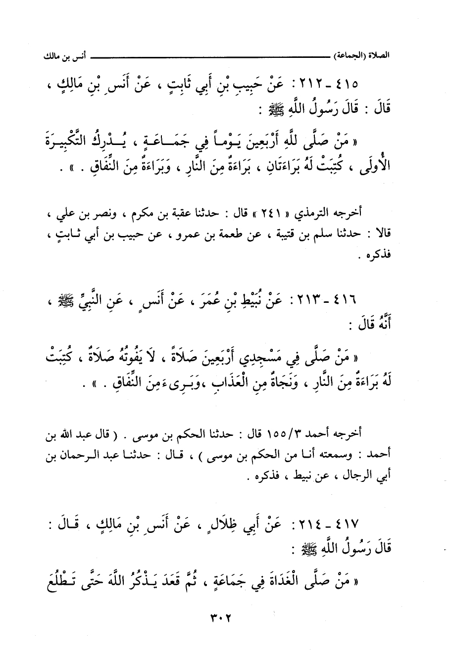 ٤١٦ - عَنْ نُبَيْطِ بْنِ عُمَرَ، عَنْ أَنَسِ بْنِ مَالِكٍ، عَنِ النَّبِيِّ صلى الله عليه وسلم، أَنَّهُ قَالَ: