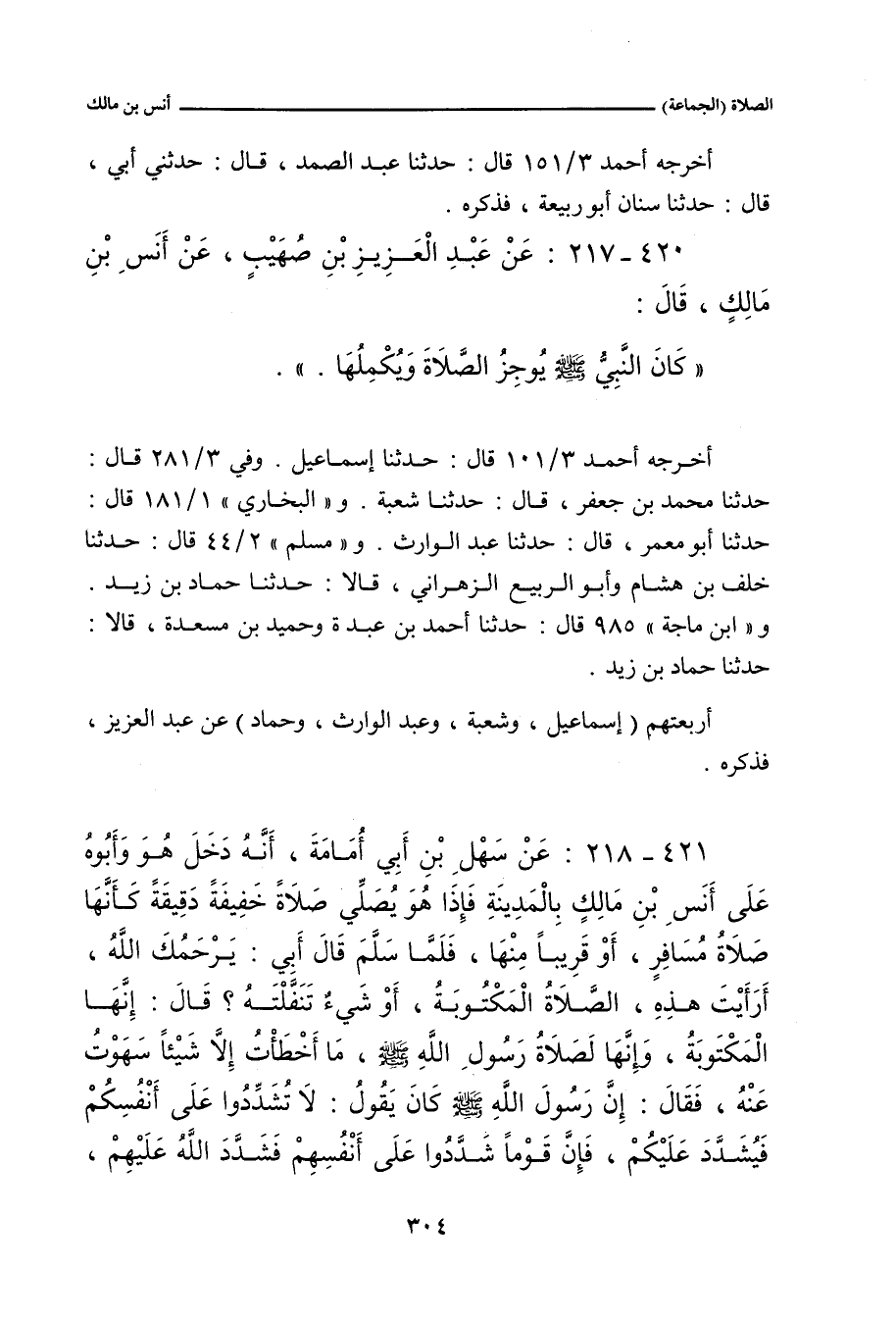 - وفي رواية: كَانَ رَسُولُ اللهِ صلى الله عليه وسلم يُجَوِّزُهَا وَيُكْمِلُهَا، يَعْنِي يُخَفِّفُ الصَّلَاةَ.