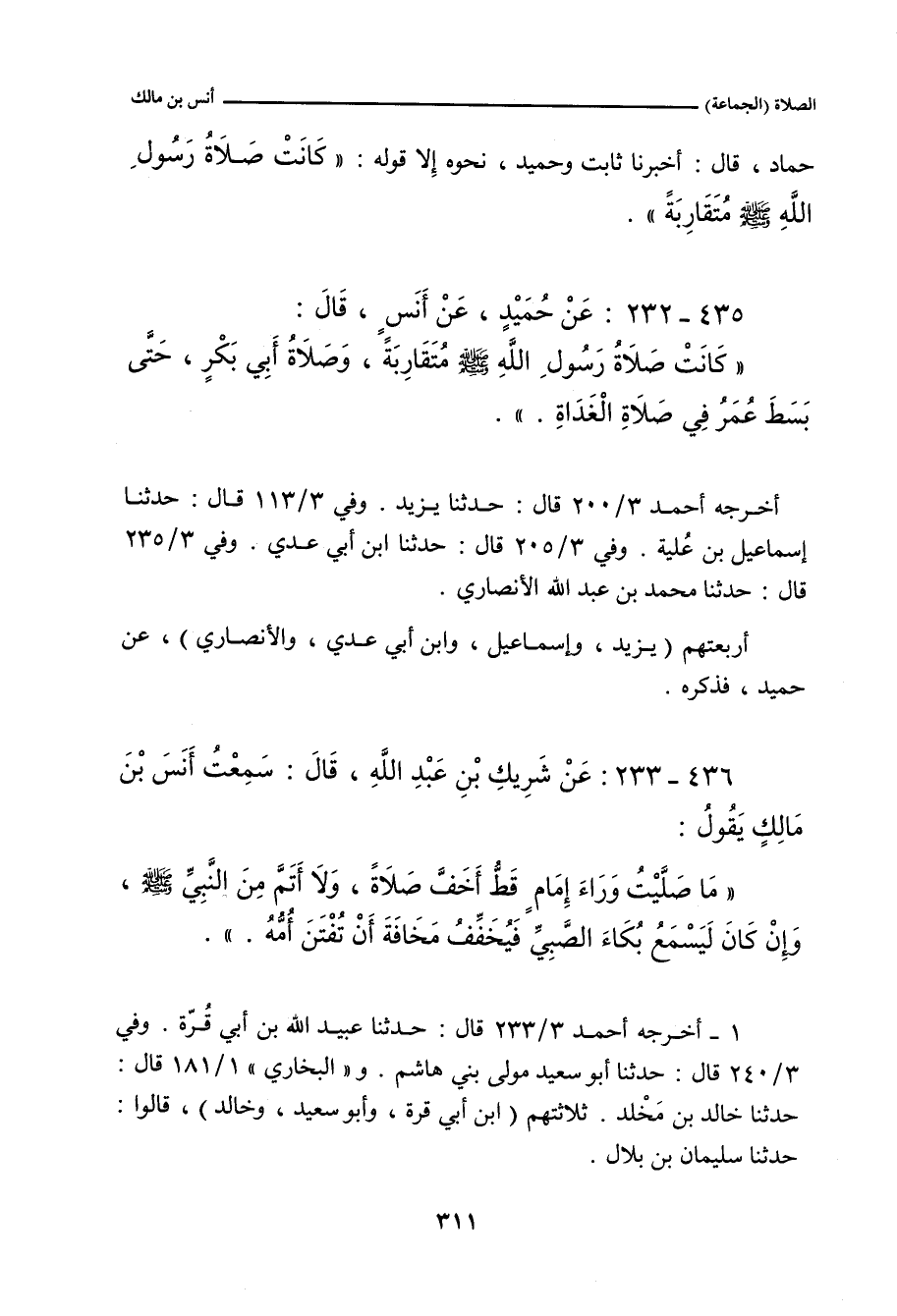 ٤٣٥ - عَنْ حُمَيْدٍ، عَنْ أَنَسٍ، قَالَ: