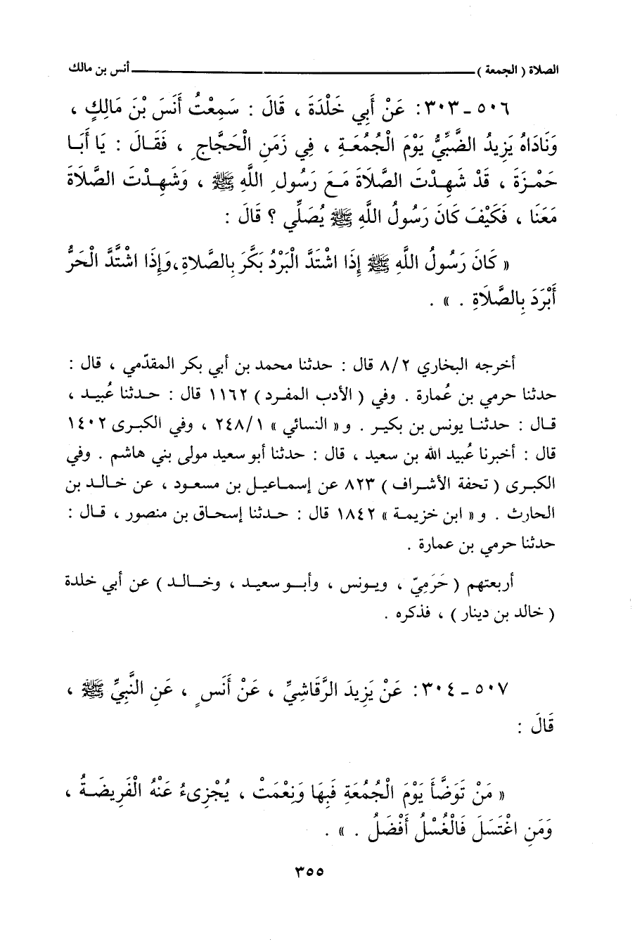 ٥٠٦ - عَنْ أَبِي خَلْدَةَ، قَالَ: سَمِعْتُ أَنَسَ بْنَ مَالِكٍ، وَنَادَاهُ يَزِيدُ الضَّبِيُّ يَوْمَ الْجُمُعَةِ، فِي زَمَنِ الْحَجَّاجِ، فَقَالَ: يَا أَبَا حَمْزَةَ، قَدْ شَهِدْتَ الصَّلَاةَ مَعَ رَسُولِ اللهِ صلى الله عليه وسلم، وَشَهِدْتَ الصَّلَاةَ مَعَنَا، فَكَيْفَ كَانَ رَسُولُ اللهِ صلى الله عليه وسلم يُصَلِّي؟ قَالَ: