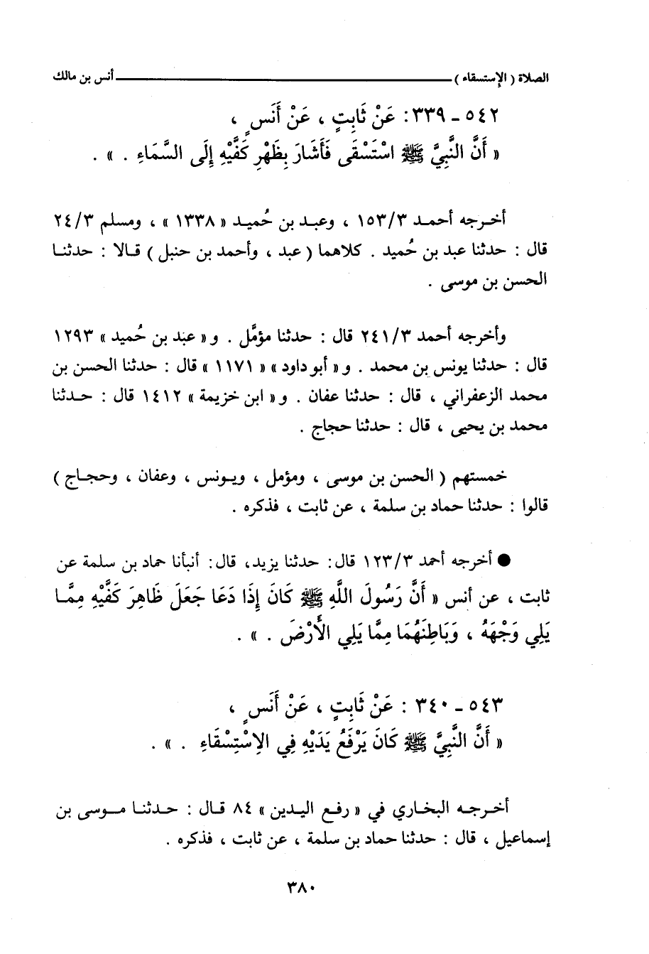 - وفي رواية: أَنَّ رَسُولَ اللهِ صلى الله عليه وسلم اسْتَسْقَى، فَأَشَارَ بِظَهْرِ كَفَّيْهِ إِلَى السَّمَاءِ.