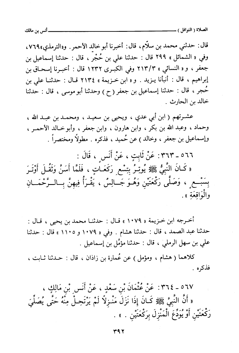 وفي (١٩٧٣) قال: حدَّثني مُحَمد، هو ابن سَلَام، أخبرنا أبو خالد الأَحْمَر. والتِّرْمِذِيّ" ٧٦٩ , وفي (الشَّمائل (٢٩٩ قال: حدَّثنا علي بن حُجْر , حدَّثنا إِسْمَاعِيل بن جَعْفَر. و"النَّسائي" ٣/ ٢١٣ , وفي "الكبرى" ١٣٢٥ قال: أخبرنا إِسْحَاق بن إبراهيم , قال: أنبأنا يَزِيد. و"ابن خزيمة" ٢١٣٤ قال: حدَّثنا علي بن حُجْر، حدَّثنا إِسْمَاعِيل، يَعْنِي ابن جَعْفَر (ح) وحدَّثنا أبو مُوسَى، حدَّثنا خالد، يَعْنِي ابن الحارث.