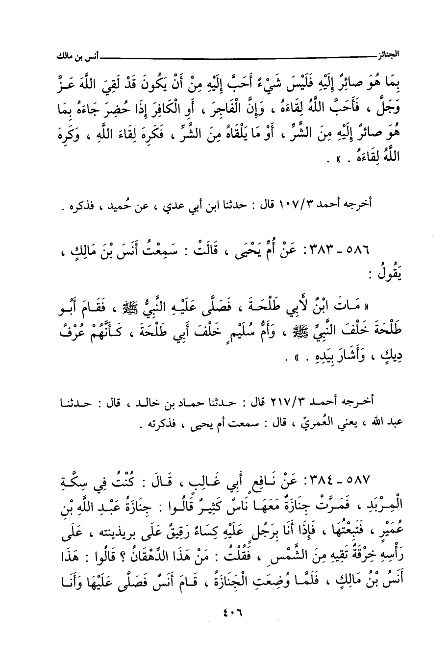 ٥٨٦ - عَنْ أُمِّ يَحْيَى، قَالَتْ: سَمِعْتُ أَنَسَ بْنَ مَالِكٍ يَقُولُ: