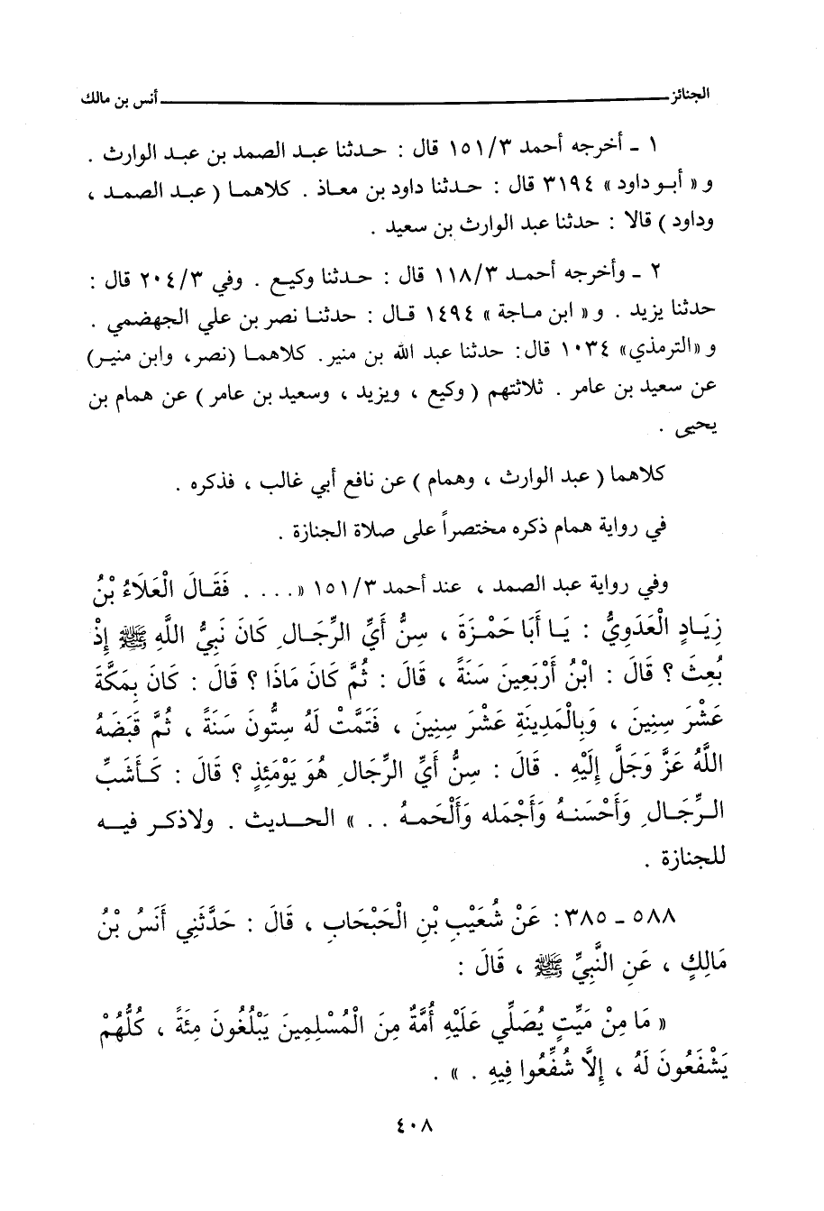 ٥٨٨ - عن شُعَيْبِ بْنِ الْحَبْحَابِ، قَالَ: حَدَّثَنِي أَنَسُ بْنُ مَالِكٍ، عَنِ النَّبِيِّ صلى الله عليه وسلم، قَالَ: