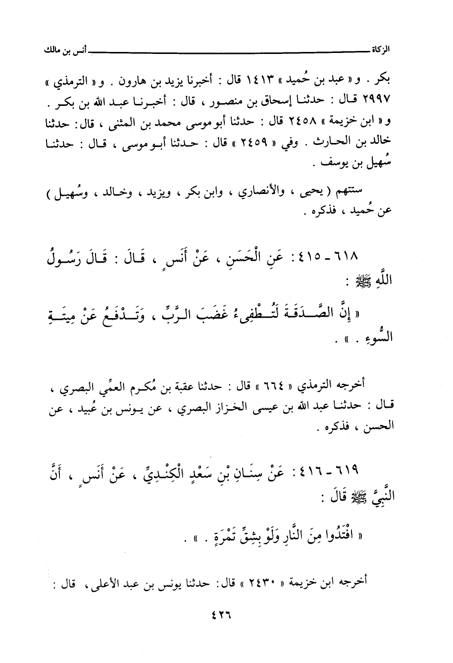 ٦١٩ - عَنْ سِنَانِ بْنِ سَعْدٍ الْكِنْدِيِّ، عَنْ أَنَسِ بْنِ مَالِكٍ، أَنَّ النَّبِيَّ صلى الله عليه وسلم قَالَ:
