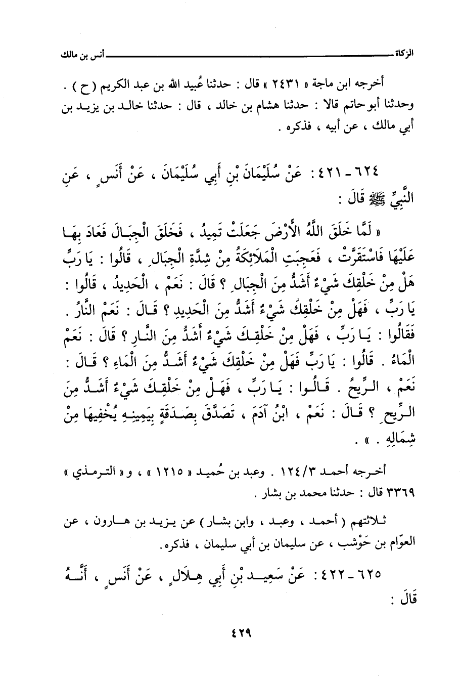 - قال أبو الحَسَن، علي بن إبراهيم بن سَلَمَة، القَطَّان، راوي (سنن ابن ماجة): حدَّثنا أبو حاتم، حدَّثنا هِشَام بن خالد، حدَّثنا خالد بن يَزِيد بن أَبي مالك، به.