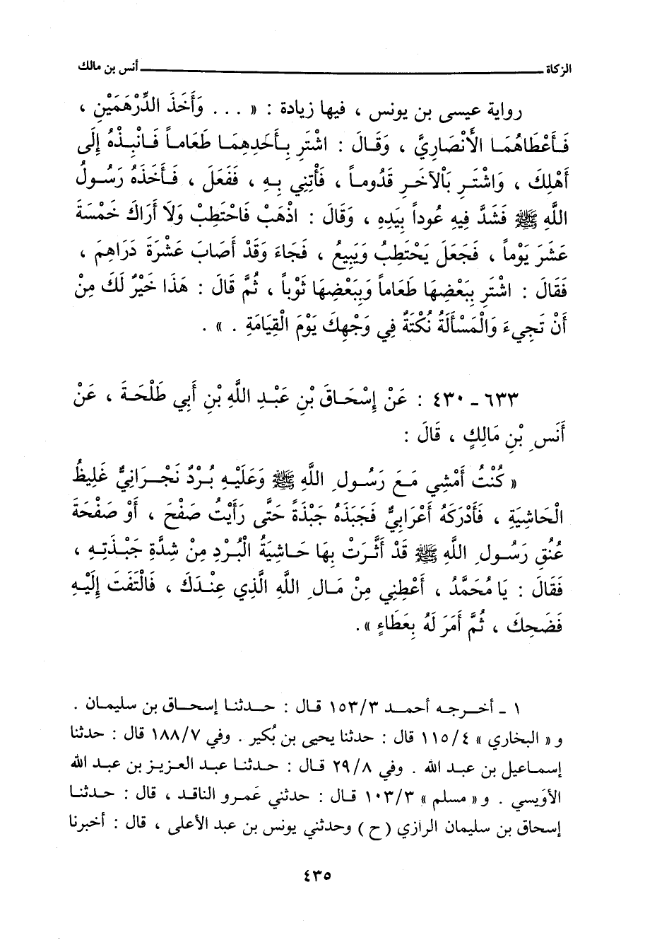 ٦٣٣ - عَنْ إِسْحَاقَ بْنِ عَبْدِ اللهِ بْنِ أَبِي طَلْحَةَ، عَنْ أَنَسِ بْنِ مَالِكٍ، قَالَ: