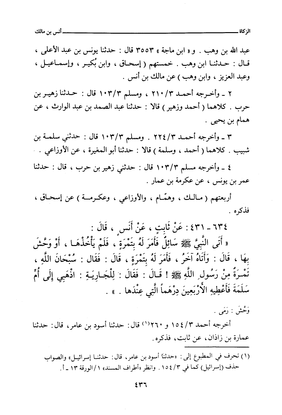وفي (٢٣٩٤) قال: حدَّثنا زُهَيْر بن حَرْب، حدَّثنا عَبْد الصَّمَد بن عَبْد الوارث، حدَّثنا هَمَّام (ح) وحدَّثني زُهَيْر بن حَرْب، حدَّثنا عُمَر بن يُونُس، حدَّثنا عِكْرِمَة بن عَمَّار (ح) وحدَّثني سَلَمَة بن شَبِيب، حدَّثنا أبو المُغِيرَة، حدَّثنا الأَوْزَاعِي. و"ابن ماجة" ٣٥٥٣ قال: حدَّثنا يُونُس بن عَبْد الأَعْلَى، حدَّثنا ابن وَهْب، حدَّثنا مالك.