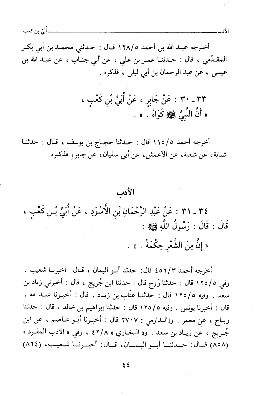 ٣٣ - عن جَابِرٍ , عَنْ أُبَيِّ بْنِ كَعْبٍ؛