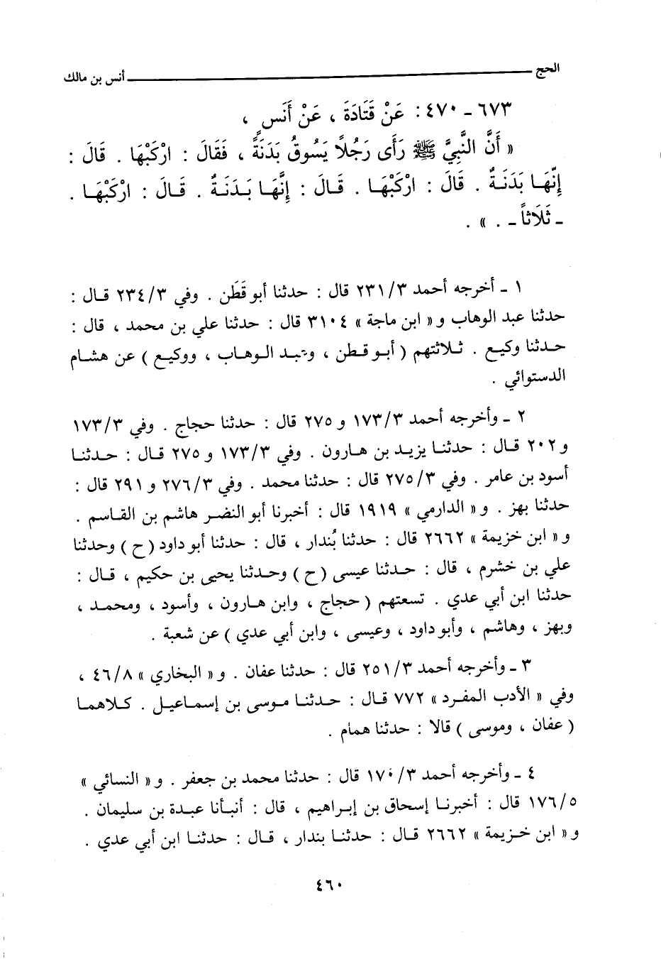 أخرجه أحمد ٣/ ١٧٠ (١٢٧٦٥) قال: حدَّثنا مُحَمد بن جَعْفَر، حدَّثنا سَعِيد. وفي ٣/ ١٧٣ (١٢٨٠٤) قال: حدَّثنا حَجَّاج، حدَّثنا شُعْبة (ح) ويزيد بن هارون، قال: أخبرنا شعبة (ح) وأسود، يعني شاذان، قال: حدثنا شعبة. وفي ٣/ ٢٠٢ (١٣١٢١) قال: حدَّثنا يَزِيد، أخبرنا شُعْبة. وفي ٣/ ٢٣١ (١٣٤٤٨) قال: حدَّثنا أبو قَطَن، حدَّثنا هِشَام. وفي ٣/ ٢٣٤ (١٣٤٩٠) قال: حدَّثنا عَبْد الوَهَّاب، أنبانا هِشَام. وفي ٣/ ٢٥١ (١٣٦٦٧) قال: حدَّثنا عَفَّان، حدَّثنا هَمَّام. وفي ٣/ ٢٧٥ (١٣٩٤٨) قال: حدَّثنا حَجَّاج، حدَّثني شُعْبة (ح) وأَسْوَد بن عامر، شاذان، قال: حدَّثنا شُعْبة. وفي ٣/ ٢٧٥ (١٣٩٤٩) قال: حدَّثنا مُحَمد، عن شُعْبة. وفي ٣/ ٢٧٦ (١٣٩٧٣) و ٣/ ٢٩١ (١٤١٤٤) قال: حدَّثنا بَهْز، حدَّثنا شُعْبة. و"الدارِمِي" ١٩١٣ قال: أخبرنا أبو النَّضْر، هاشم بن القاسِم، حدَّثنا شُعْبة. و"البُخَارِي" ٢/ ٢٠٥ (١٦٩٠) قال: حدَّثنا مُسْلم بن إبراهيم، حدَّثنا هِشَام، وشُعْبة. وفي ٤/ ٨ (٢٧٥٤) قال: حدَّثنا قُتَيْبَة بن سَعِيد، حدَّثنا أبو عَوَانَة. وفي ٨/ ٤٦ (٦١٥٩)، وفي (الأدب المفرد) ٧٧٢ قال: حدَّثنا مُوسَى بن إِسْمَاعِيل، حدَّثنا هَمَّام. و"ابن ماجة" ٣١٠٤ قال: حدَّثنا علي بن مُحَمد، حدَّثنا وَكِيع، عن هِشَام صاحب الدَّسْتَوَائِي. والتِّرْمِذِيّ" ٩١١ قال: حدَّثنا قُتَيْبَة، حدَّثنا أبو عَوَانَة. و"النَّسائي" ٥/ ١٧٦، وفي "الكبرى" ٣٧٦٨ قال: أخبرنا إِسْحَاق بن إبراهيم , قال: أنبانا عَبْدَة بن سُلَيْمان، قال: حدَّثنا سَعِيد. و"ابن خزيمة" ٢٦٦٢ قال: حدَّثنا بُنْدَار، حدَّثنا أبو داود، حدَّثنا شُعْبة (ح) وحدَّثنا علي بن خَشْرَم، وحدَّثنا عِيسَى، عن شُعْبة (ح) وحدَّثنا يَحيى بن حَكِيم، حدَّثنا ابن أَبي عَدِي، عن شُعْبة (ح) وحدَّثنا بُنْدَار، حدَّثنا ابن أَبي عَدِي، عن سَعِيد.