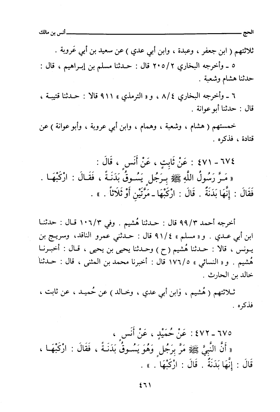 - وفي رواية: رَأَى رَسُولُ اللهِ صلى الله عليه وسلم رَجُلاً يَسُوقُ بَدَنَةً، قَدْ جَهَدَهُ الْمَشْيُ، فَقَالَ: ارْكَبْهَا. فَقَالَ: يَا رَسُولَ اللهِ، إِنَّهَا بَدَنَةٌ. قَالَ: ارْكَبْهَا، وَإِنْ كَانَتْ بَدَنَةً.
