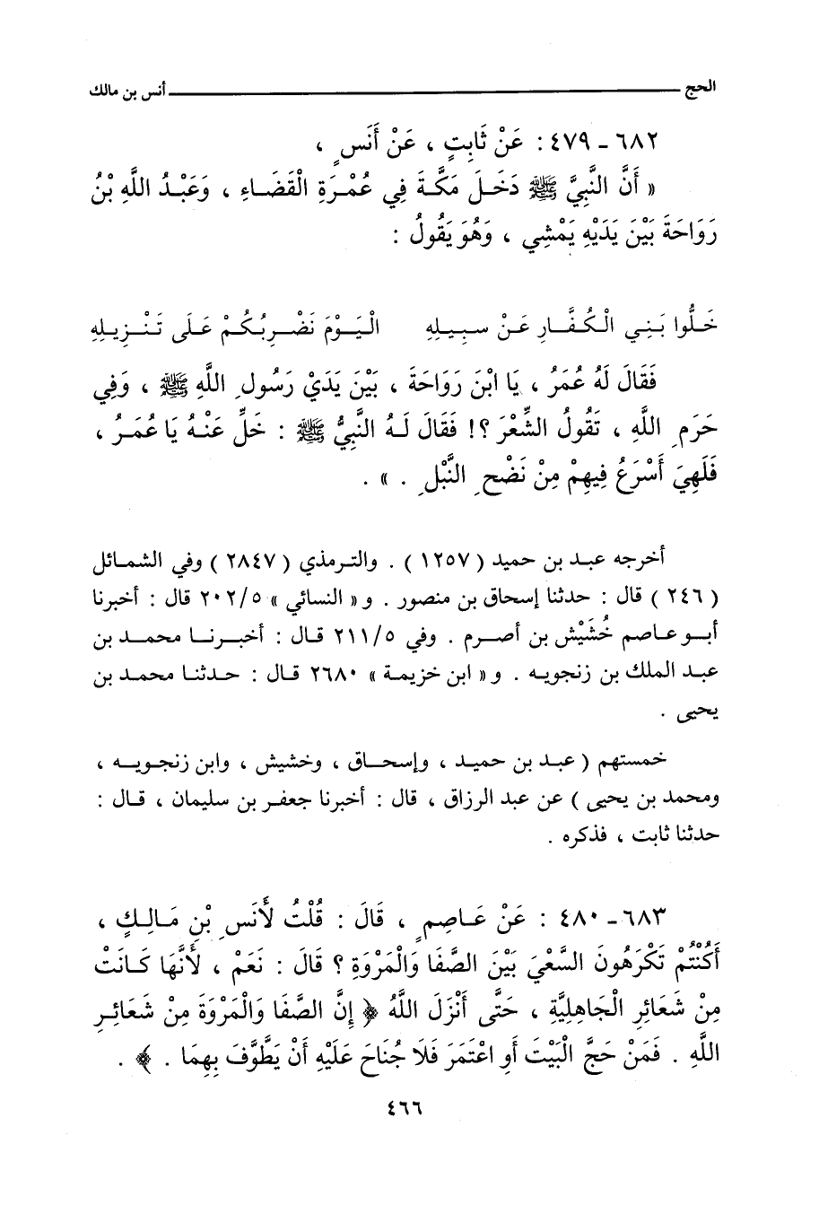 أخرجه عَبْد بن حُمَيْد (١٢٥٧) قال: أخبرنا عَبْد الرَّزَّاق. والتِّرْمِذِيّ" ٢٨٤٧، وفي (الشَّمائل) ٢٤٦ قال: حدَّثنا إِسْحَاق بن مَنْصُور، أخبرنا عَبْد الرَّزَّاق. و"النَّسائي" ٥/ ٢٠٢، وفي "الكبرى" ٣٨٤٢ قال: أخبرنا أبو عاصم، خُشَيْش بن أَصْرَم، قال: حدَّثنا عَبْد الرَّزَّاق. وفي ٥/ ٢١١، وفي "الكبرى" ٣٨٦٢ قال: أخبرنا مُحَمد بن عَبْد الملك بن زَنْجَوَيْه، قال: حدَّثنا عَبْد الرَّزَّاق , عن جَعْفَر بن سُلَيْمان الضُّبَعِي، قال: حدَّثنا ثابت، فذكره.