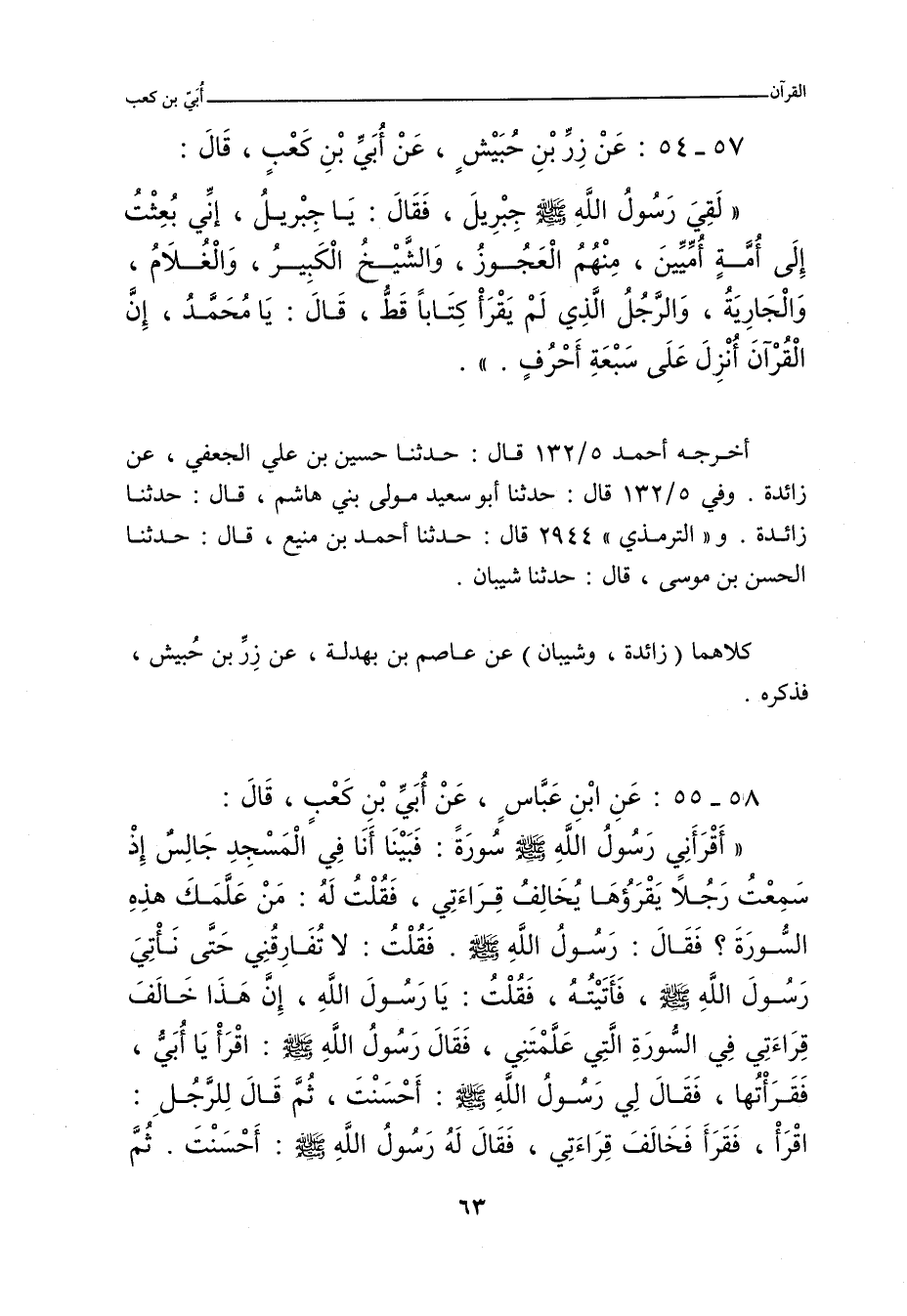 ٥٧ - عَنْ زِرِّ بْنِ حُبَيْشٍ، عَنْ أُبَيٍّ، قَالَ: