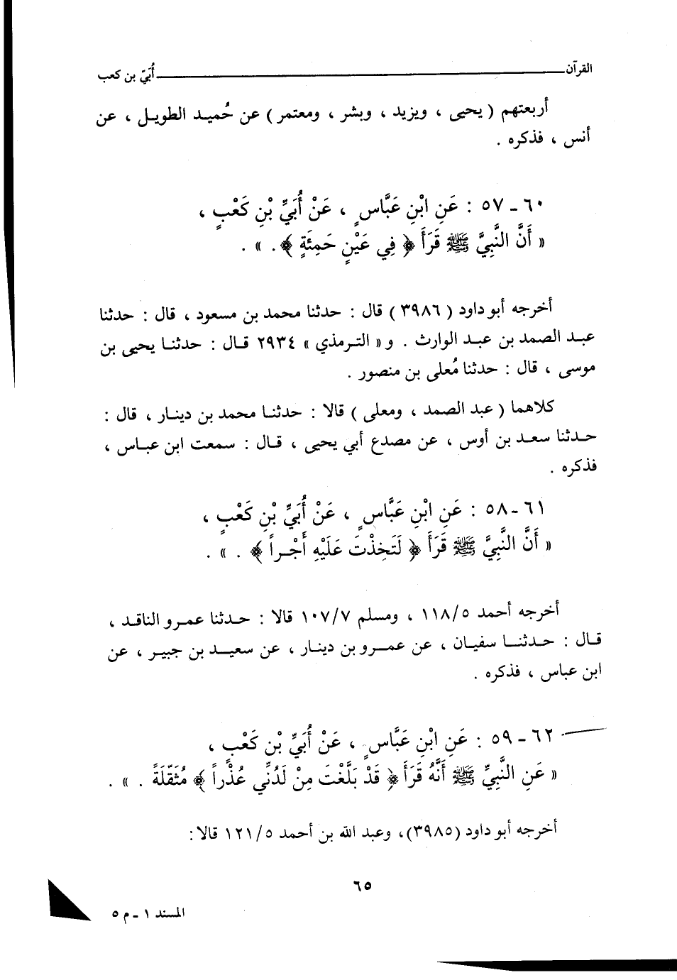 ٦٠ - عَنِ ابْنِ عَبَّاسٍ، قَالَ: أَقْرَأَنِي أُبَيُّ بْنُ كَعْبٍ؛