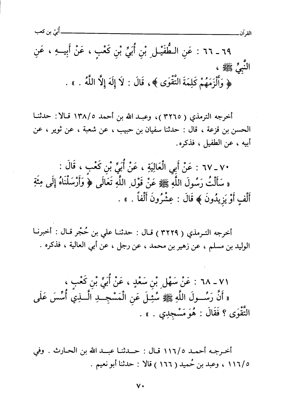 ٧٠ - عَنْ أَبِي الْعَالِيَةِ، عَنْ أُبَيِّ بْنِ كَعْبٍ، قَالَ: