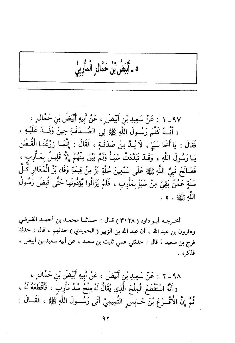 ٩٧ - عَنْ سَعِيدِ بْنِ أَبْيَضَ، عَنْ أَبِيهِ أَبْيَضَ بْنِ حَمَّالٍ؛