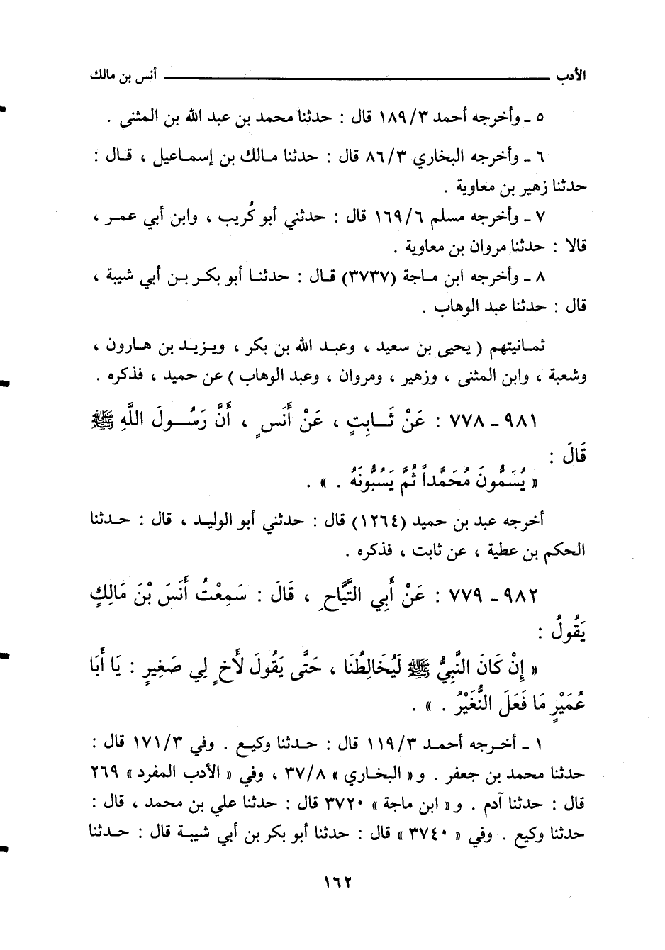 ٩٨١ - عَنْ ثَابِتٍ، عَنْ أَنَسٍ، أَنَّ رَسُولَ اللهِ صلى الله عليه وسلم قَالَ: