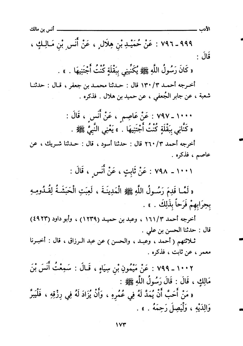 ٩٩٩ - عَنْ حُمَيْدِ بْنِ هِلَالٍ، عَنْ أَنَسِ بْنِ مَالِكٍ، قَالَ: